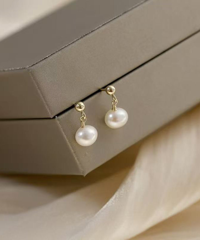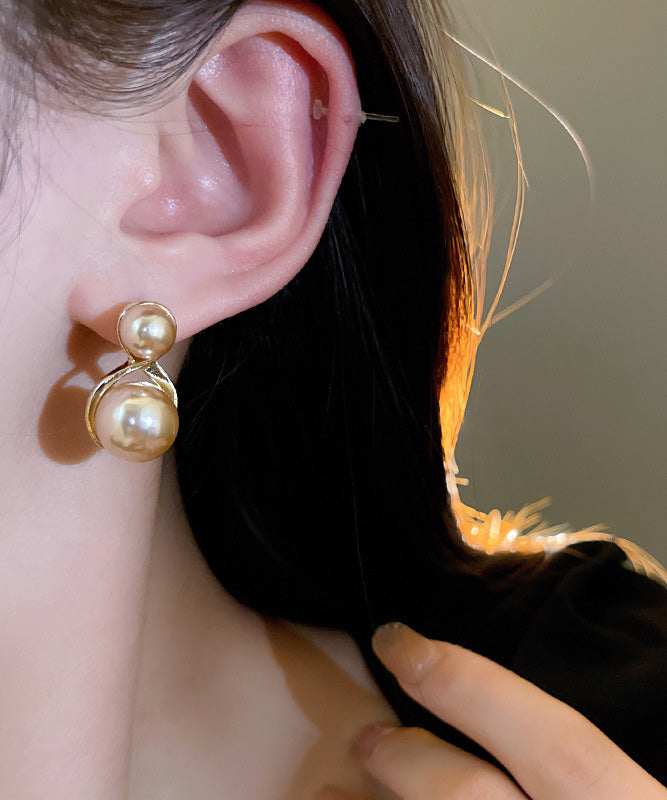 Modern Champagne Copper Overgild Pearl Stud Earrings