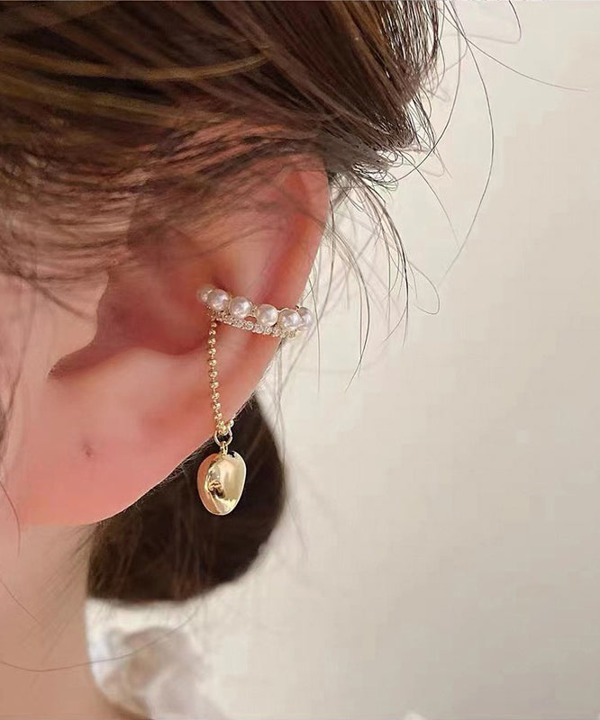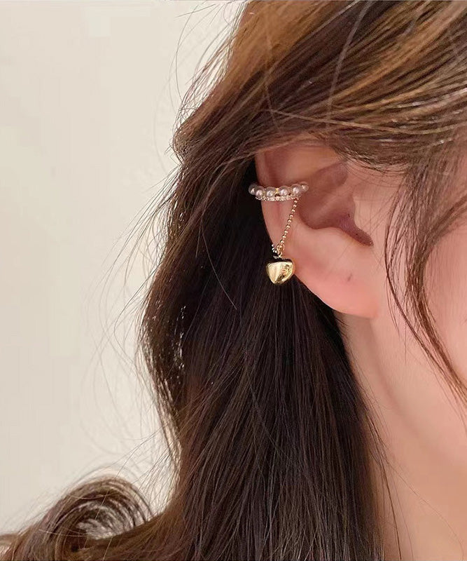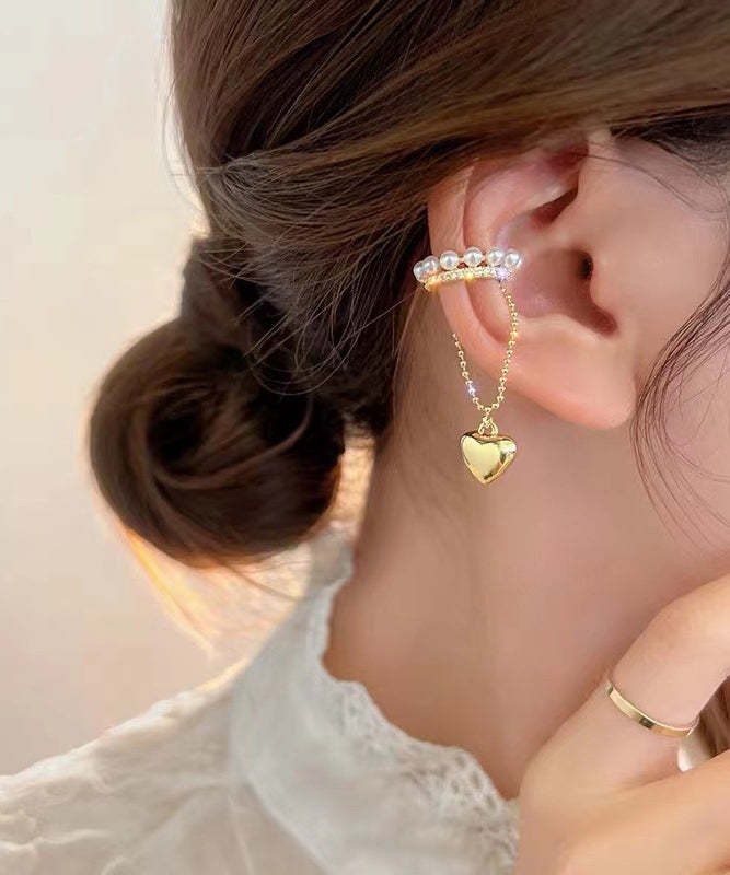 Chic Gold Copper Overgild Zircon Pearl Love Tassel Drop Earrings