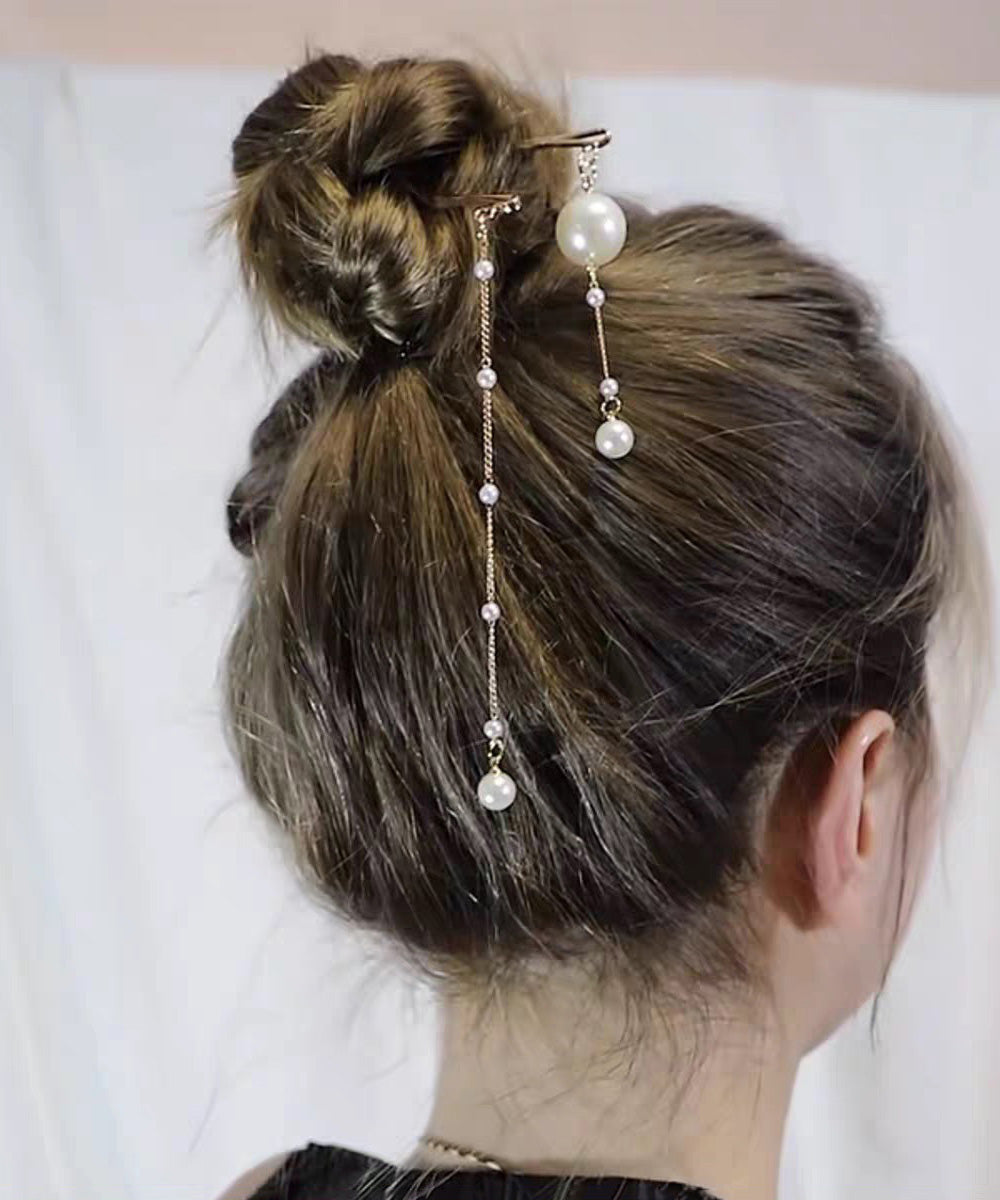 Chinese Style Gold Alloy Pearl Tassel Hairpin Two-Piece Set