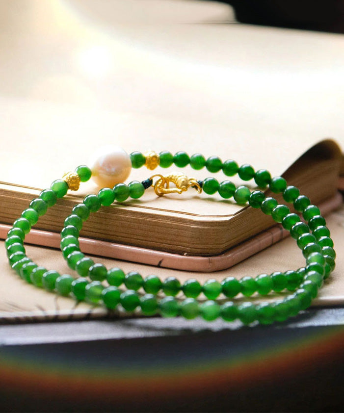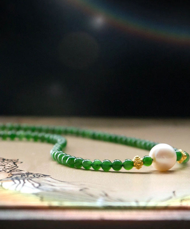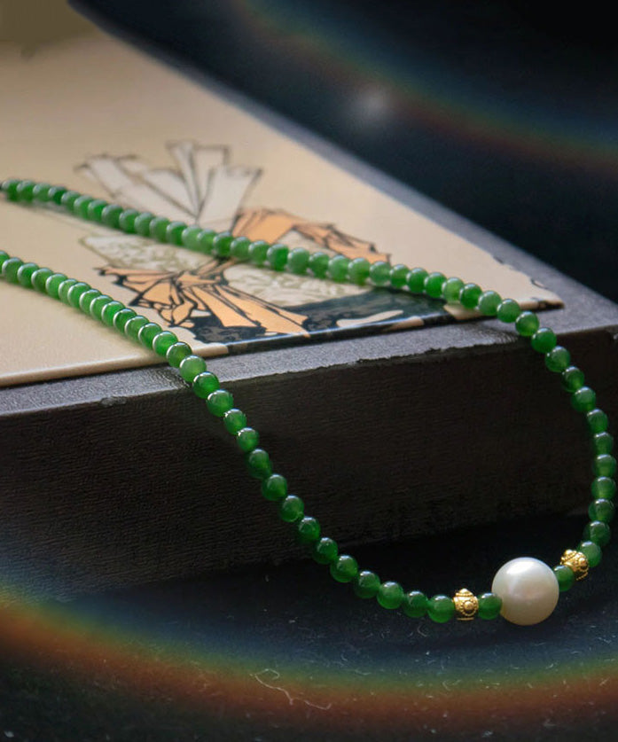 Classy Green Sterling Silver Overgild Pearl Beading Pendant Necklace