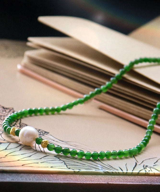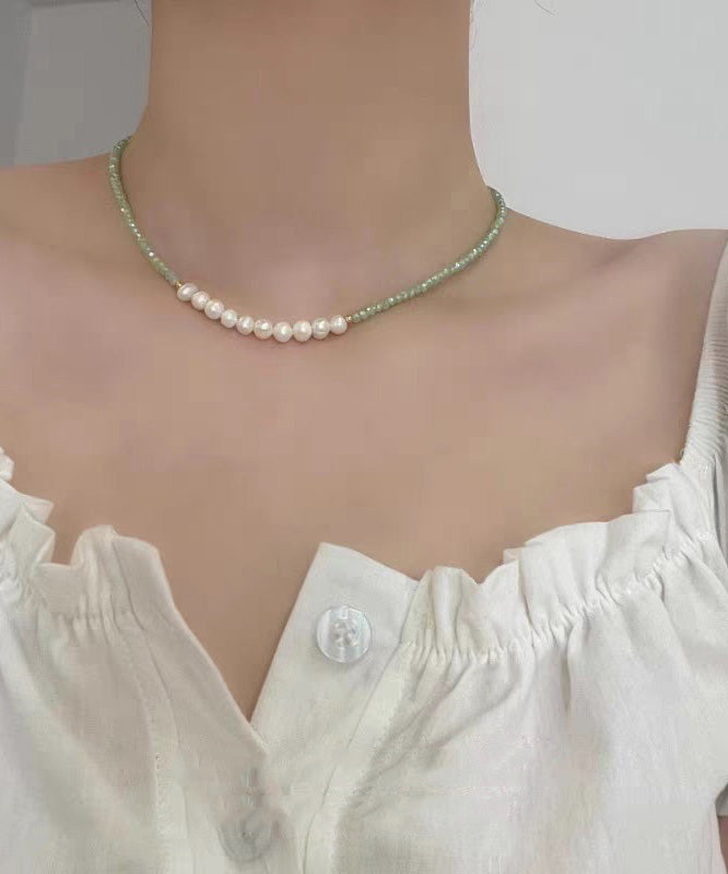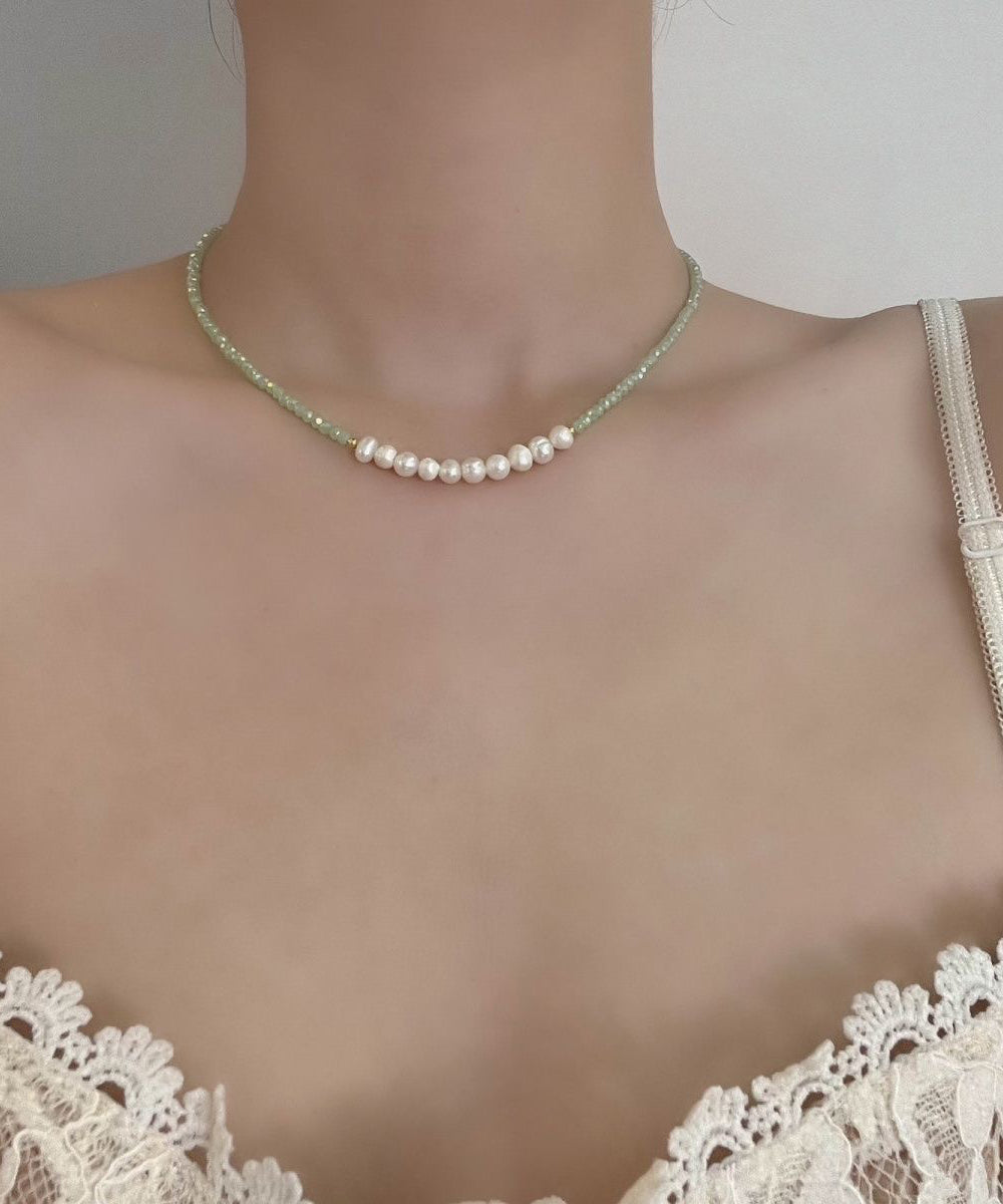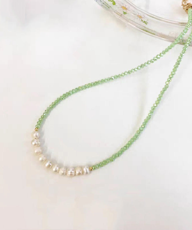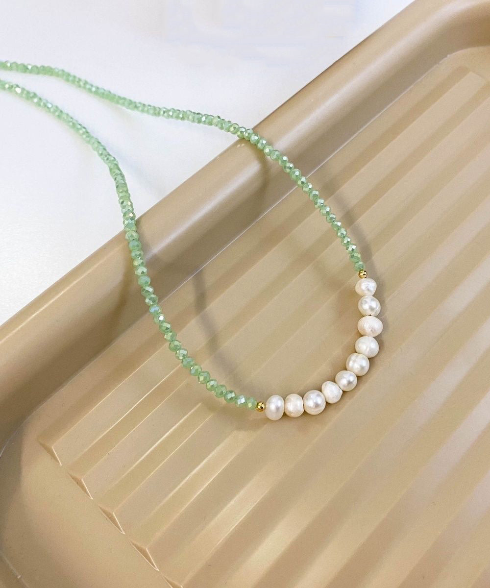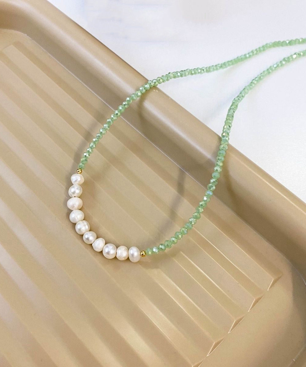 Original Design Light Green Stainless Steel Pearl Beading Crystal Gratuated Bead Necklace