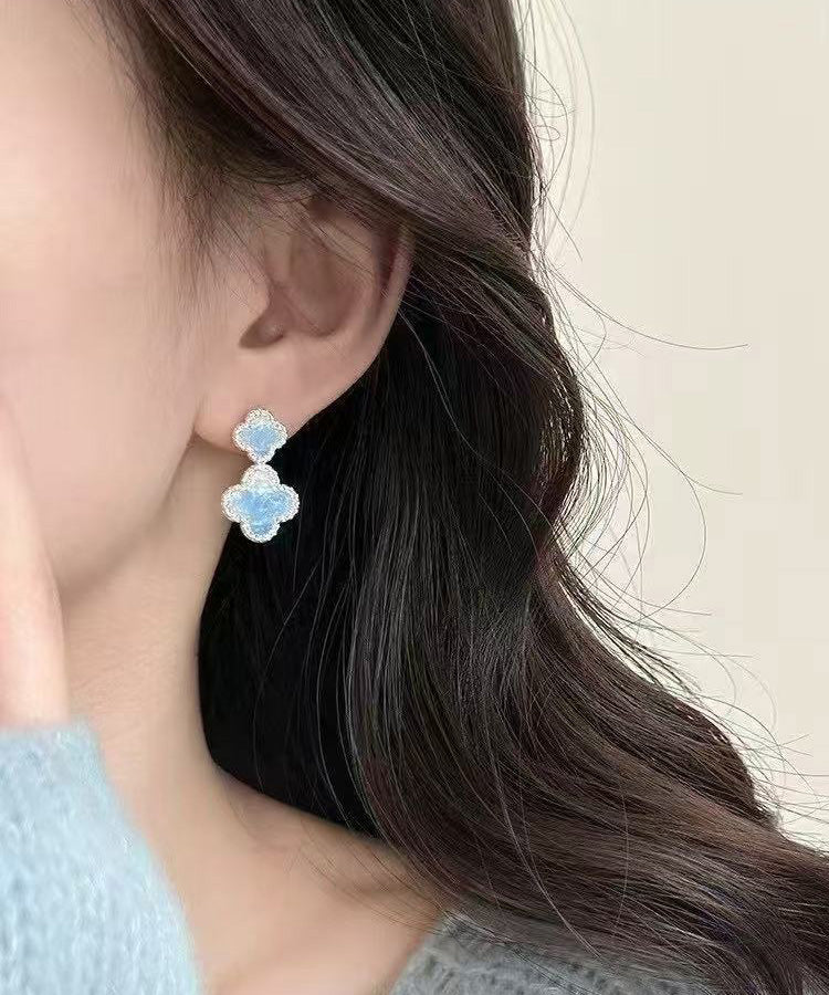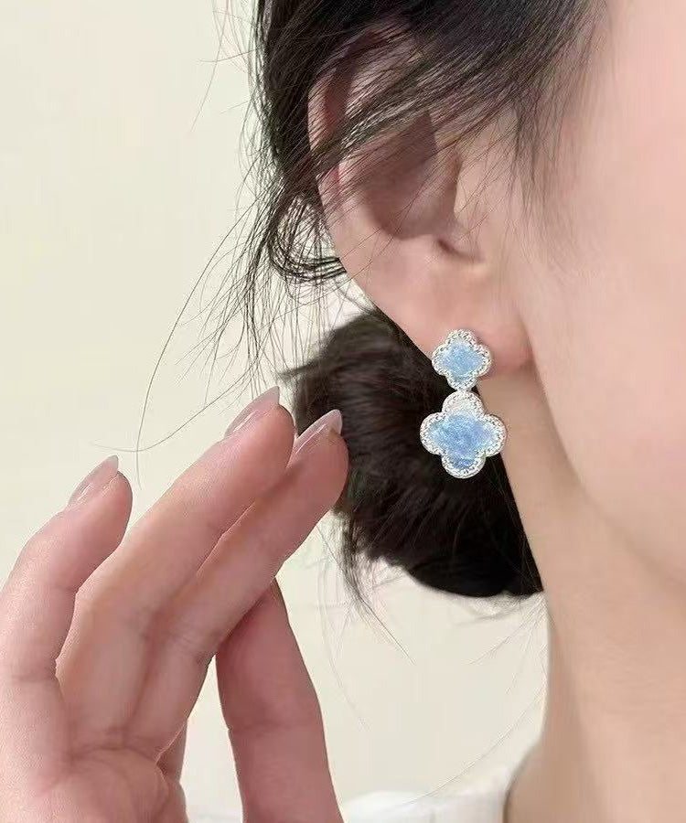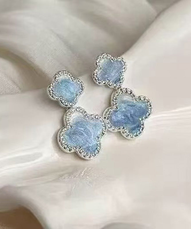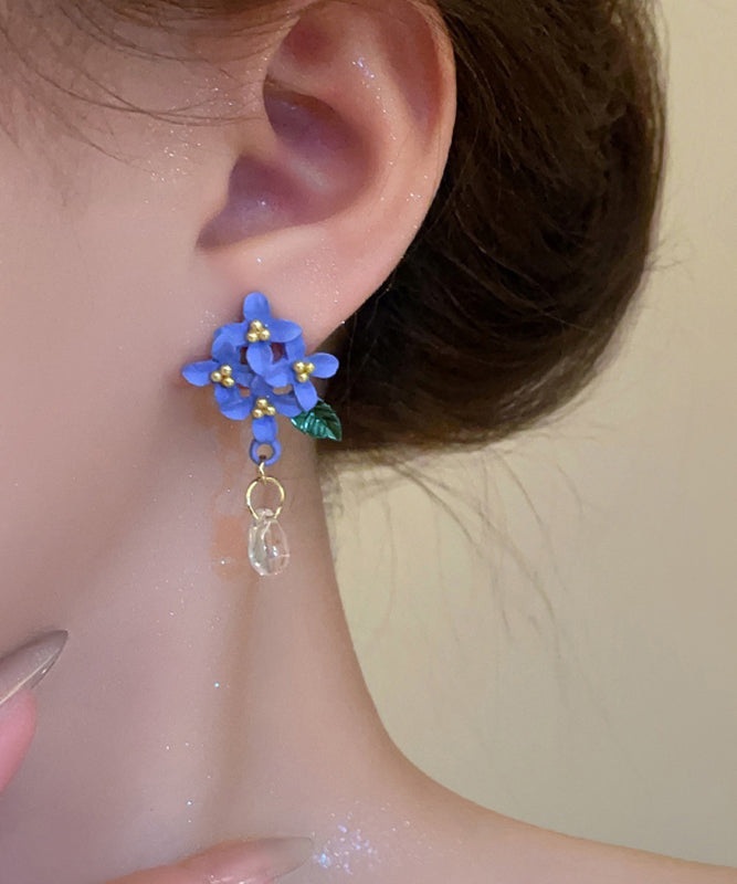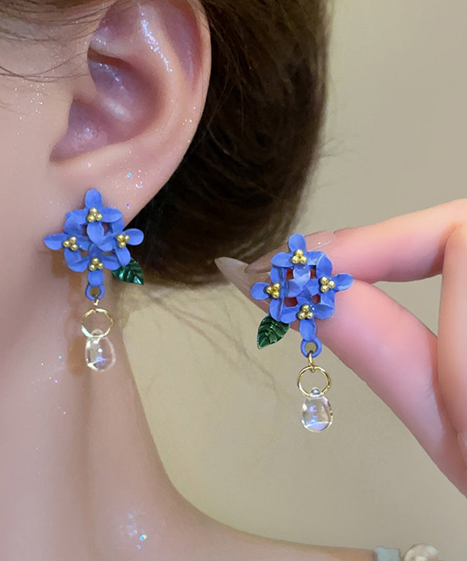 Cute Blue Alloy Resin Baked Enamel Floral Drop Earrings
