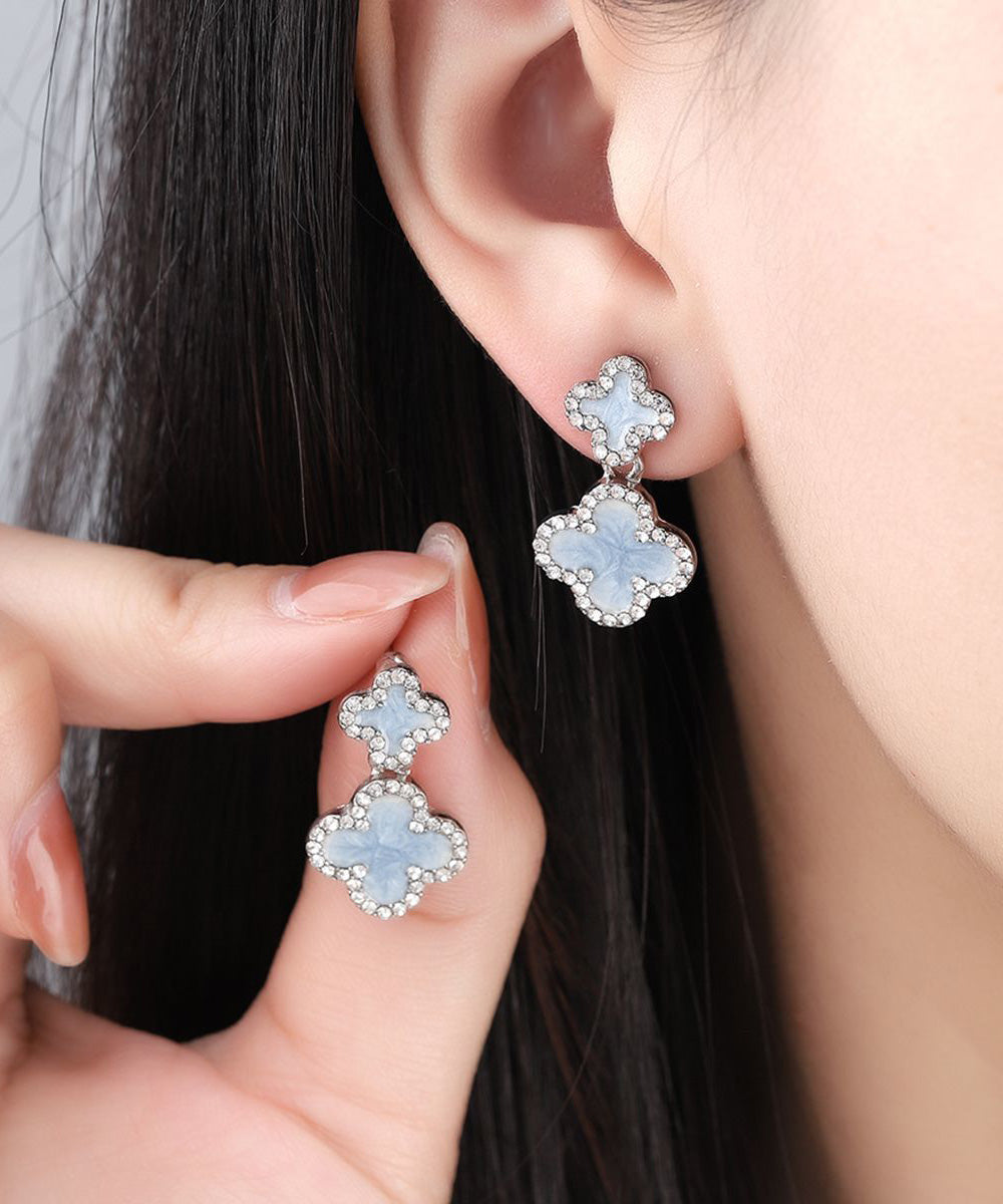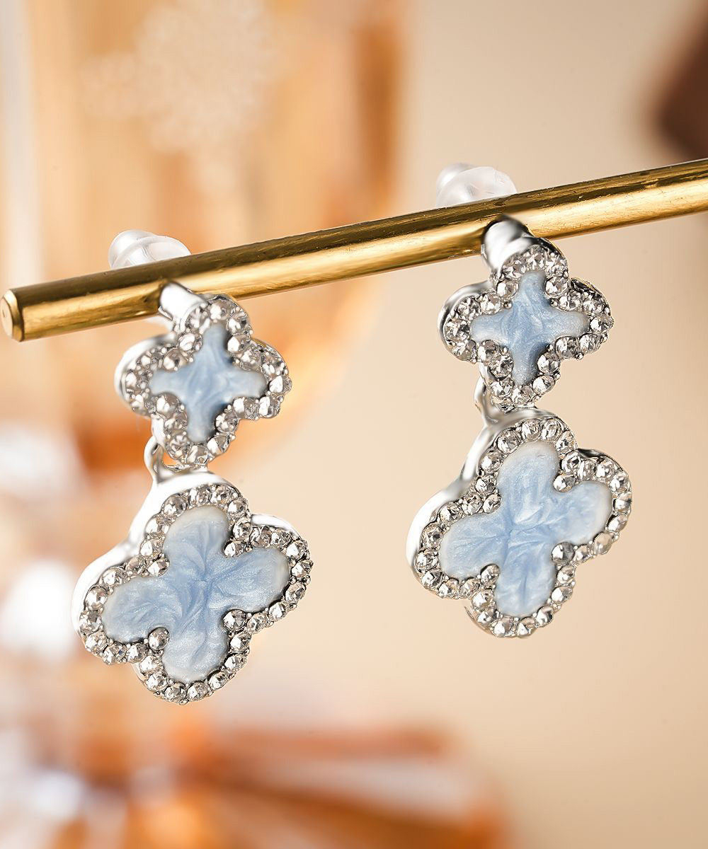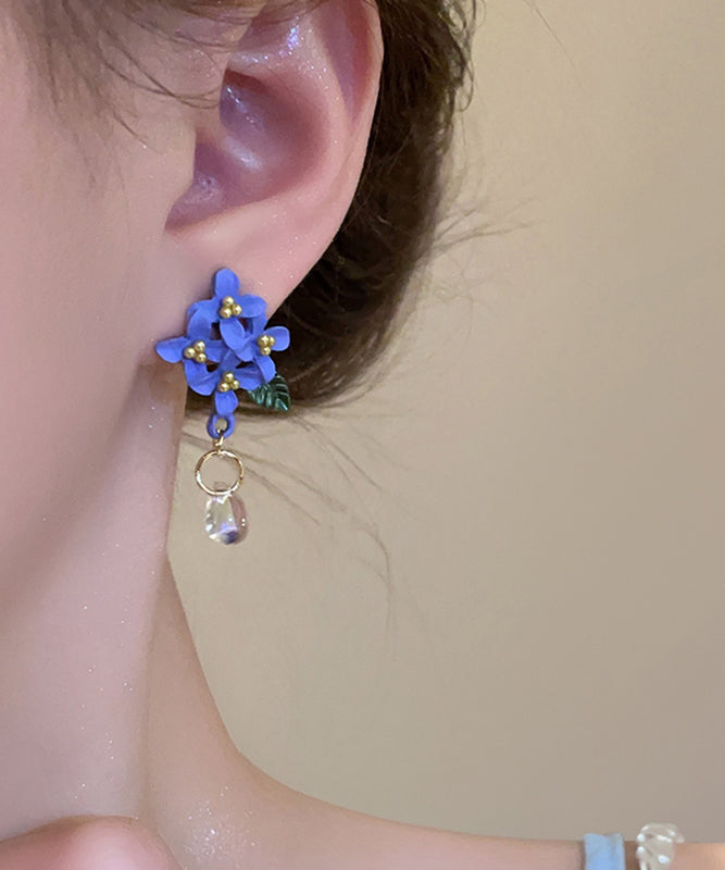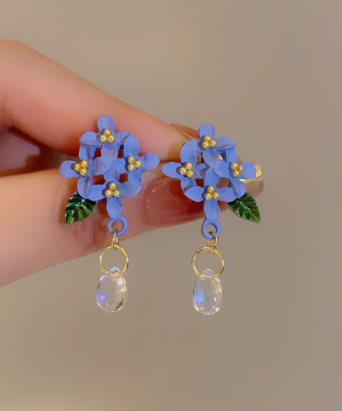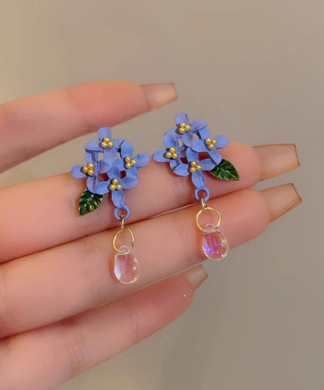 Style Blue Copper Crystal Allloy Drip Glaze Floral Drop Earrings