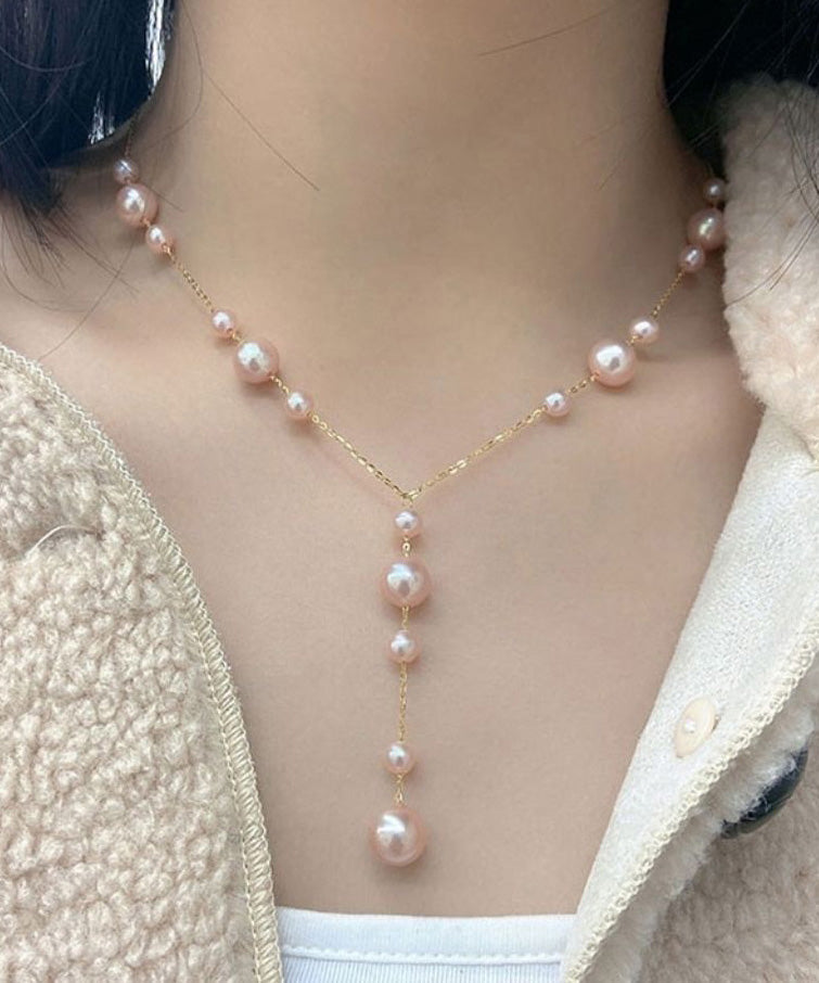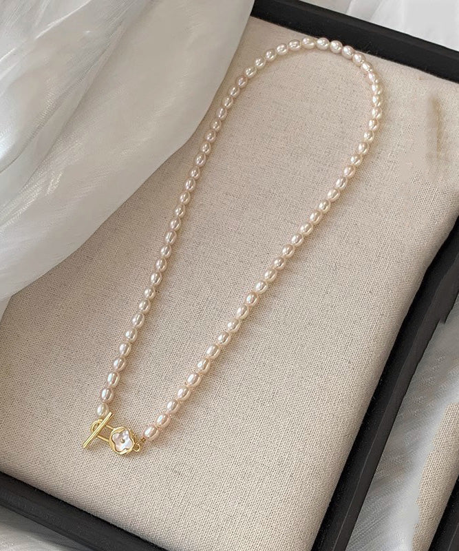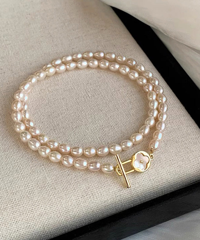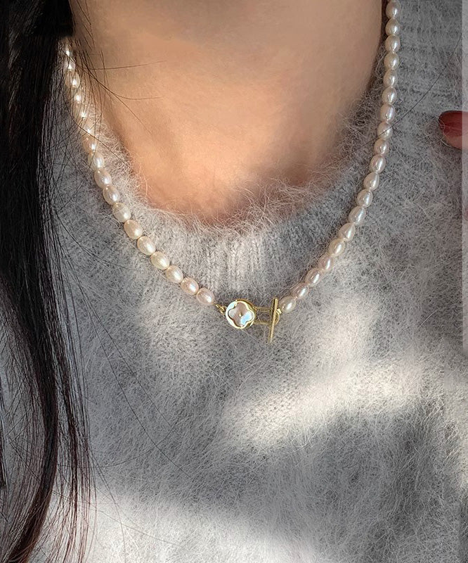 Modern White Copper Overgild Pearl Four-Leaf Clover Gratuated Bead Necklace