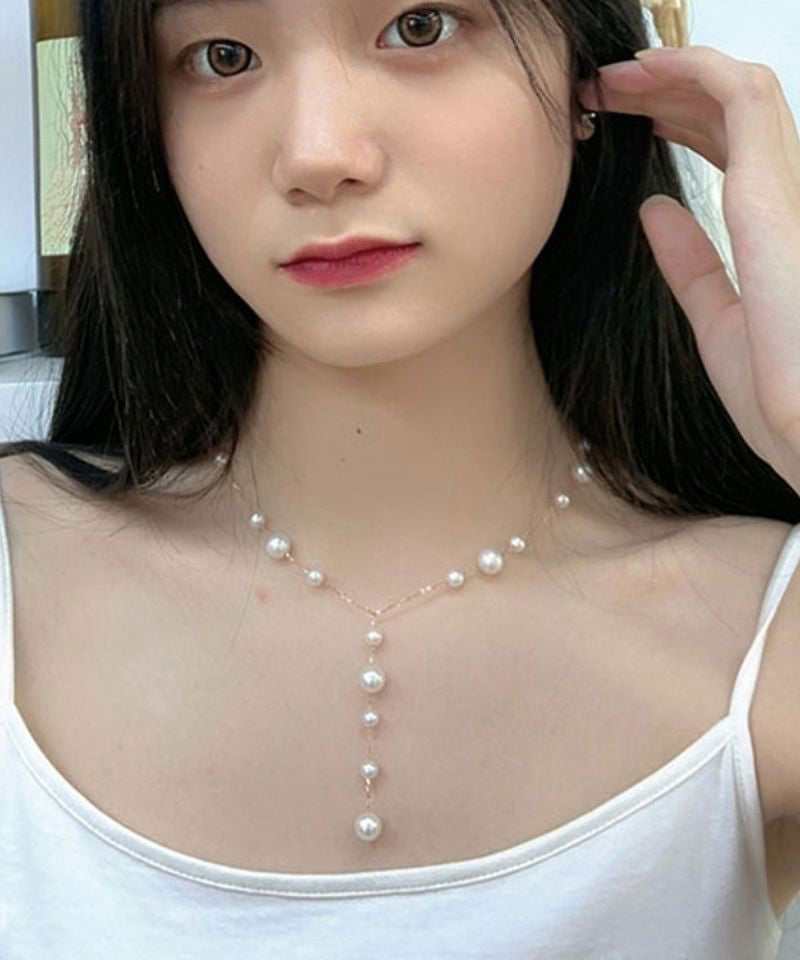 Elegant White Alloy Pearl Sweater Gratuated Bead Necklace