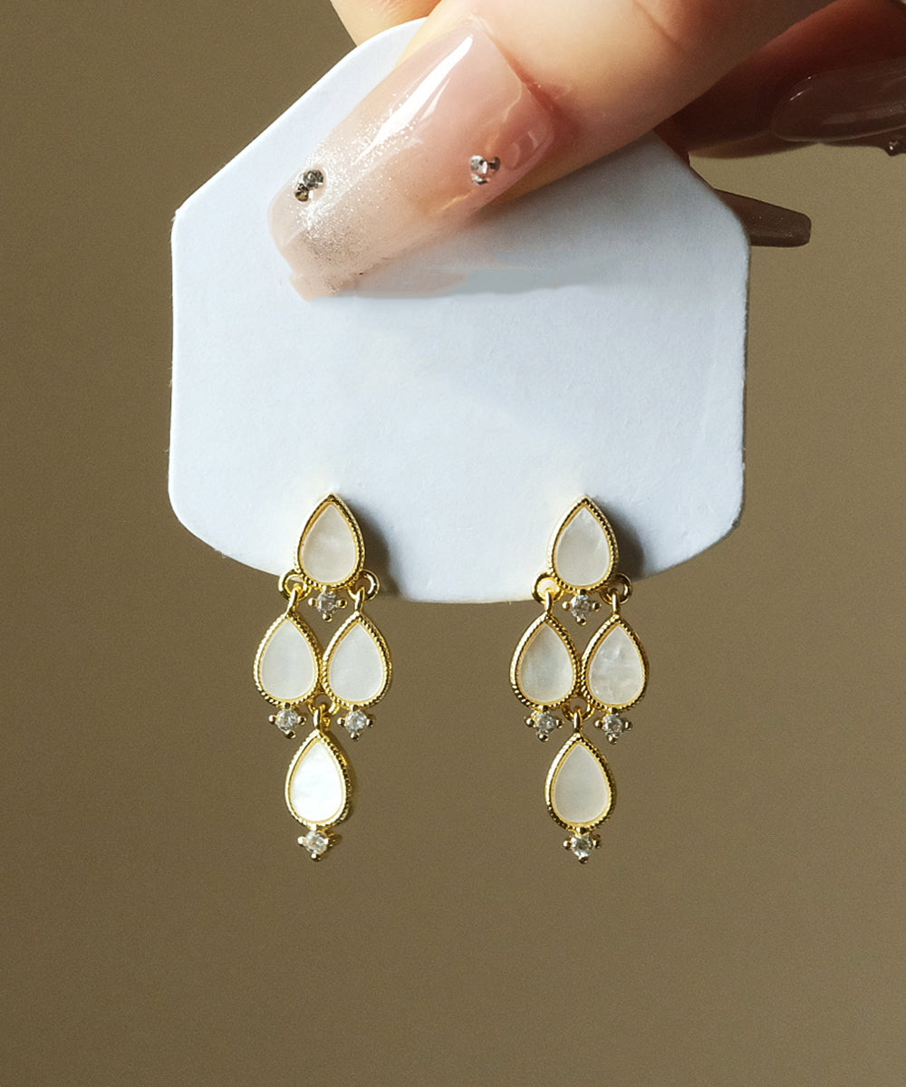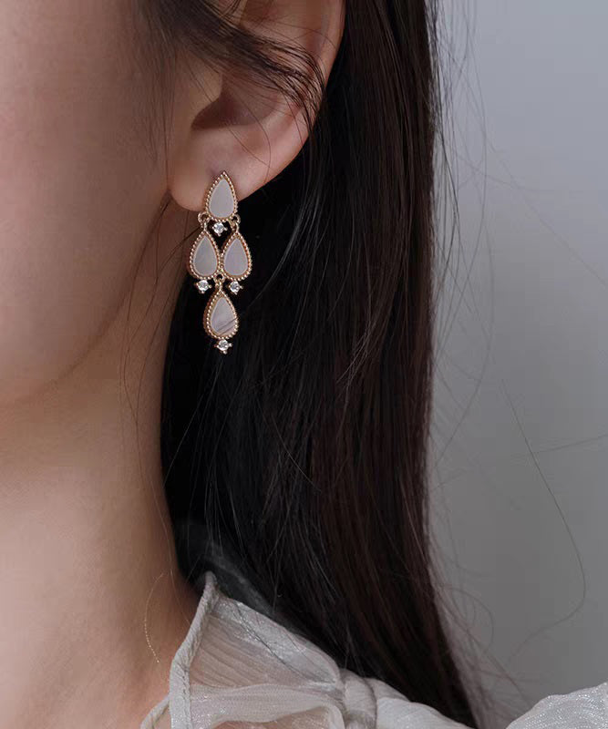 Modern White Copper Zircon Multilayer Water Drop Stud Earrings