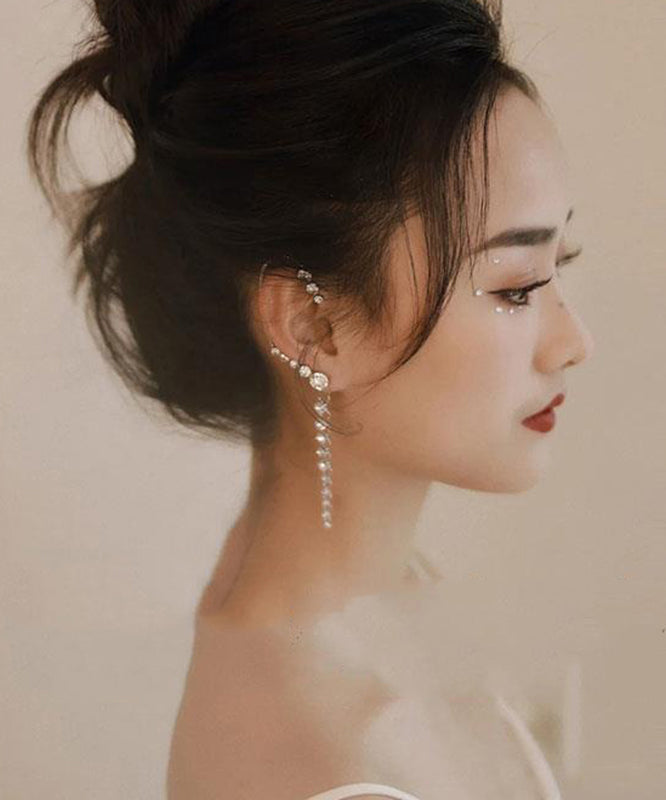 Unique Silk Sterling Silver Zircon Single Drop Earrings