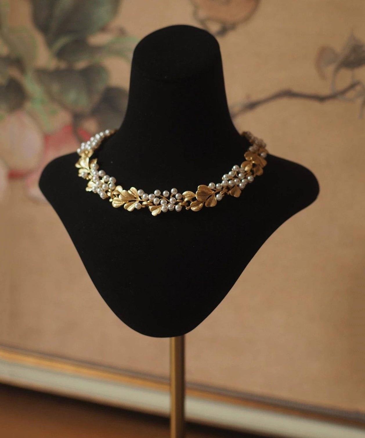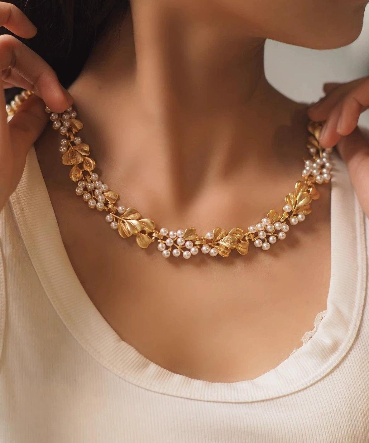 Vogue Gold Copper Alloy Pearl Ginkgo Leaf Gratuated Bead Necklace