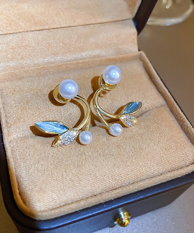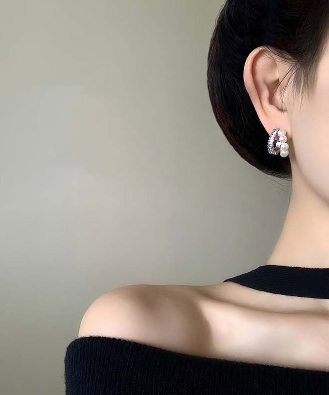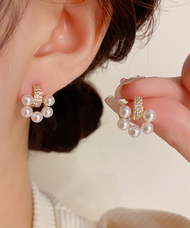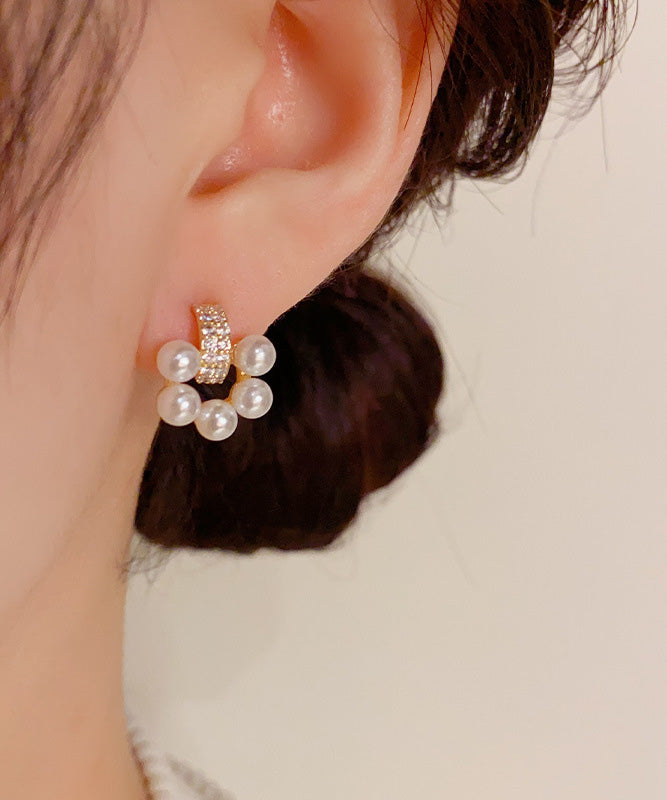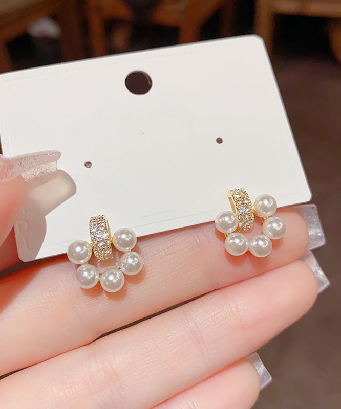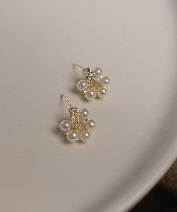 Elegant White Copper Overgild Zircon Pearl Stud Earrings