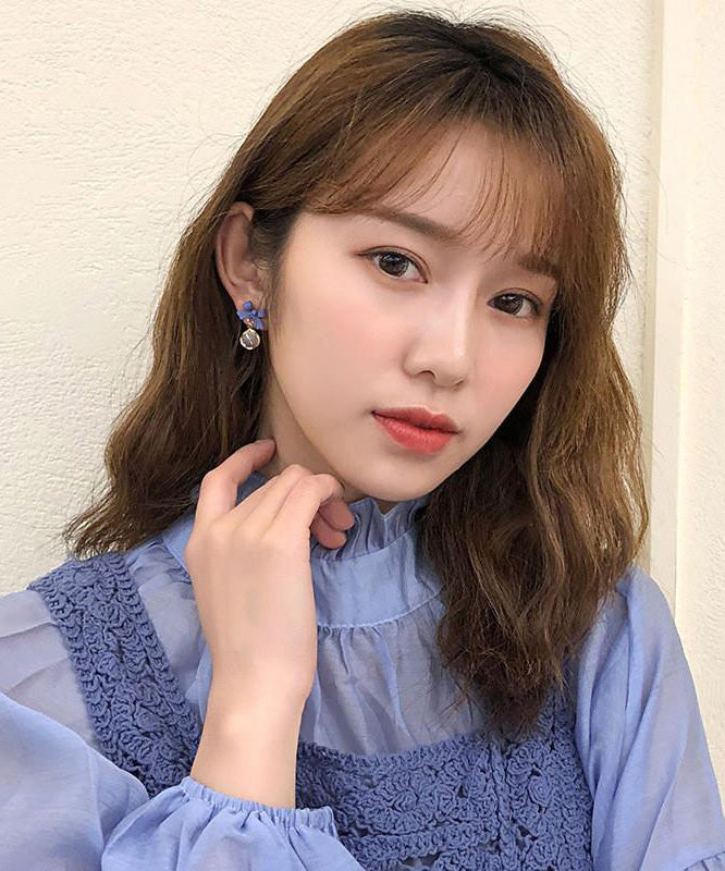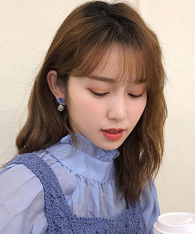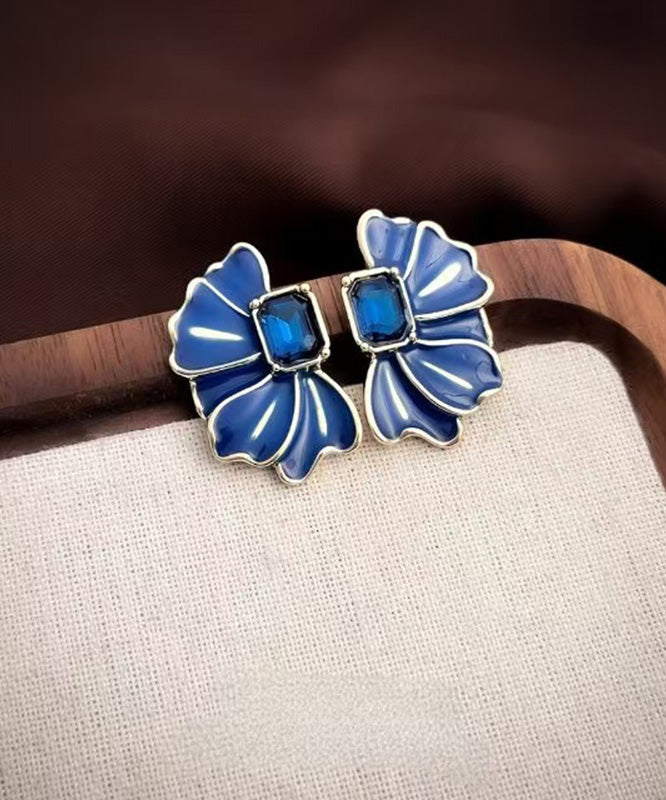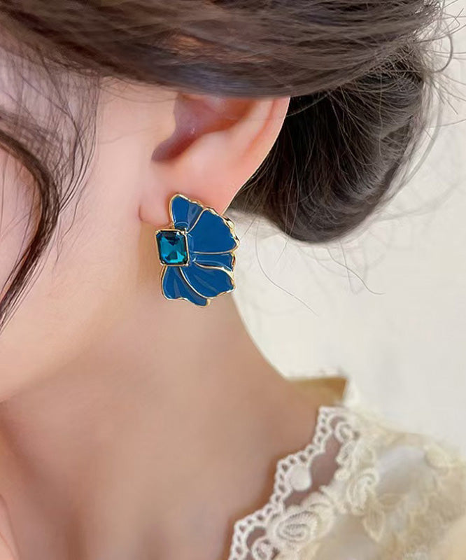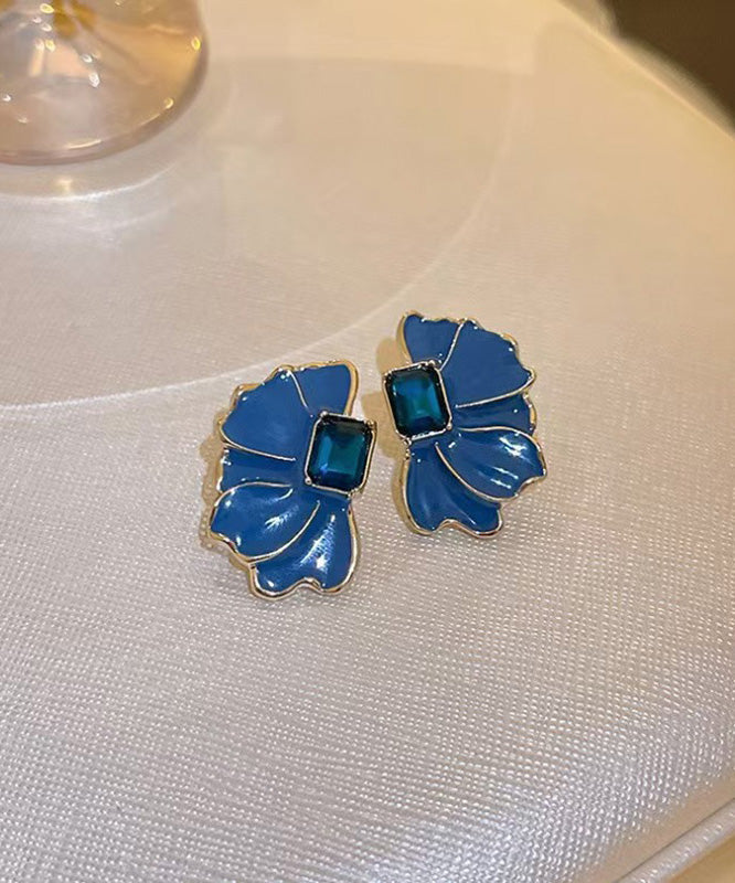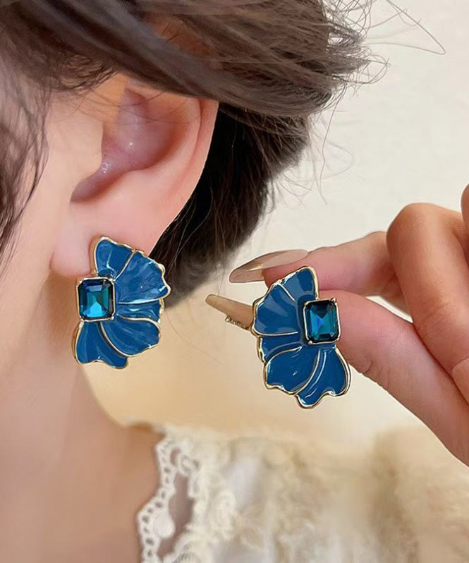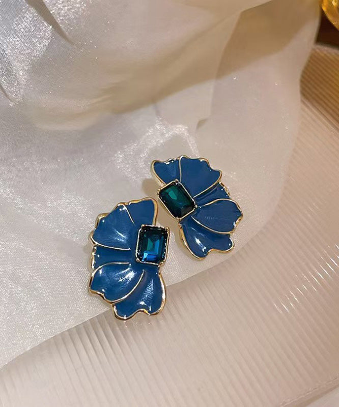 Boho Blue Alloy Crystal Drip Glaze Petal Stud Earrings
