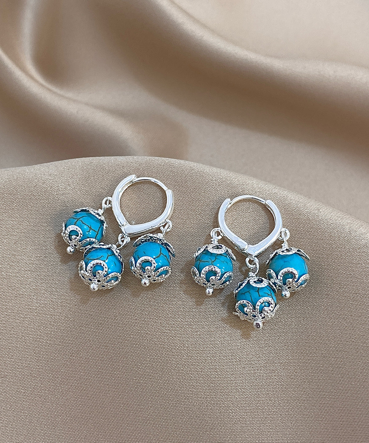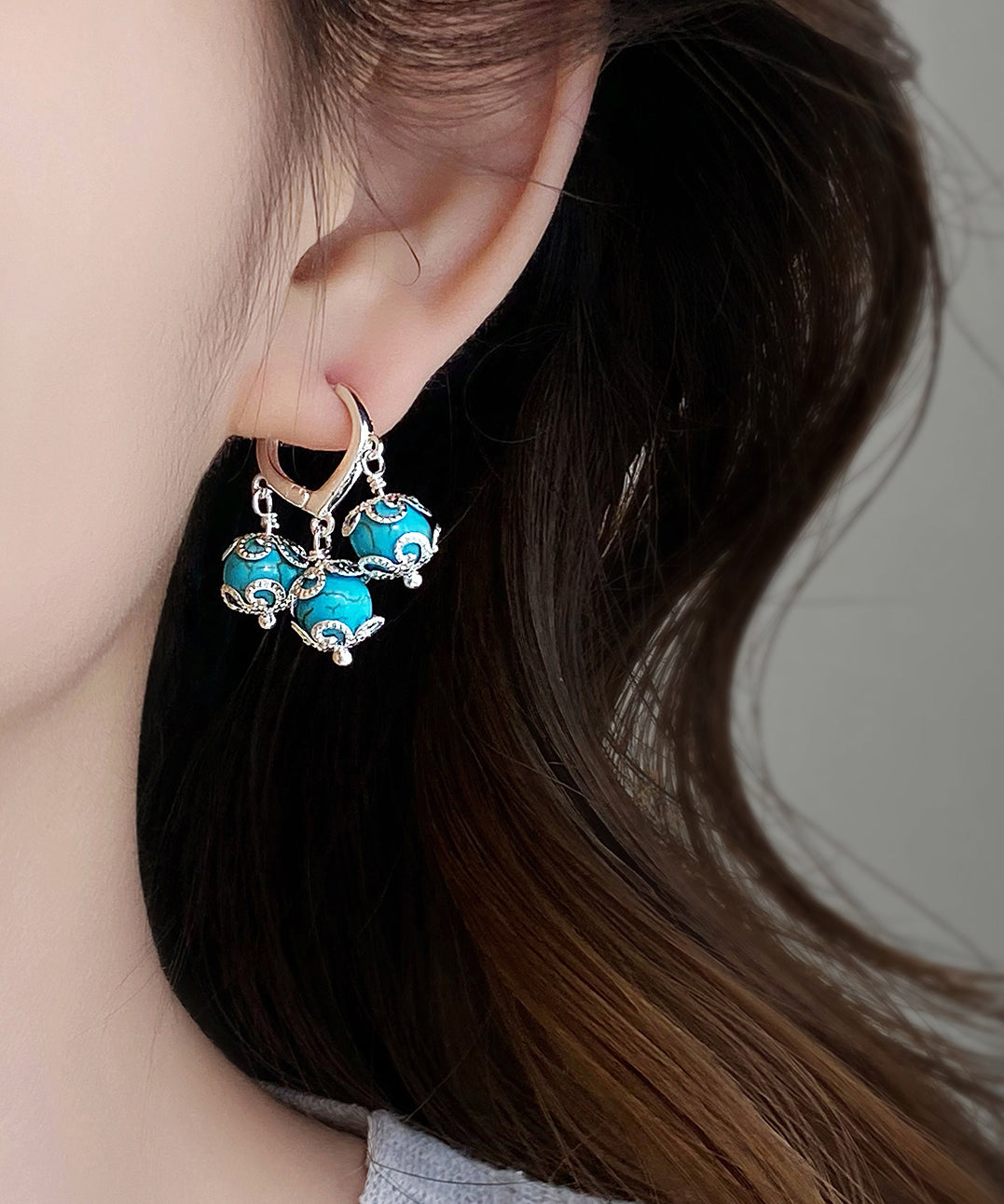 Boutique Blue Copper Overgild Turquoise Tassel Drop Earrings