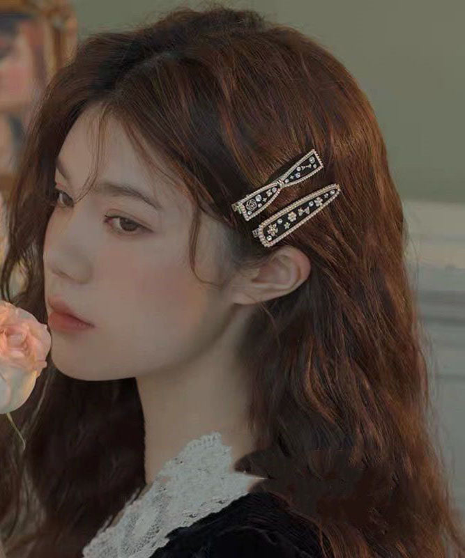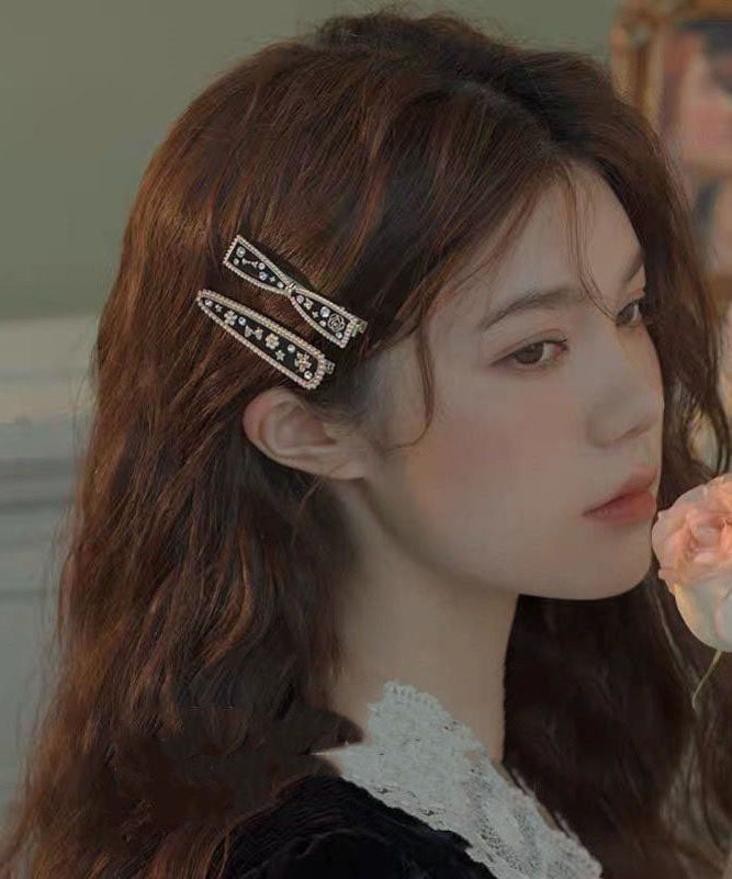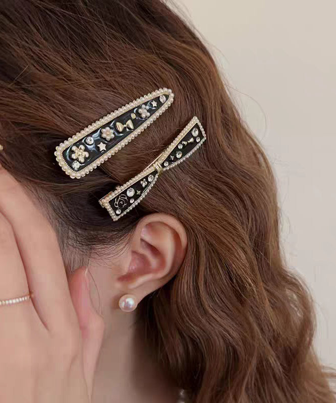 Chic Black Alloy Zircon Bow And Water Drop Two-Piece Set Hairpin
