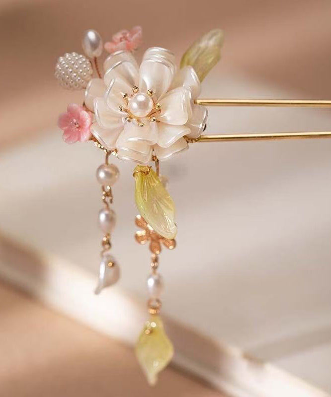 Chinese Style Gold Alloy Pearl Colored Glaze Tassel Hairpin