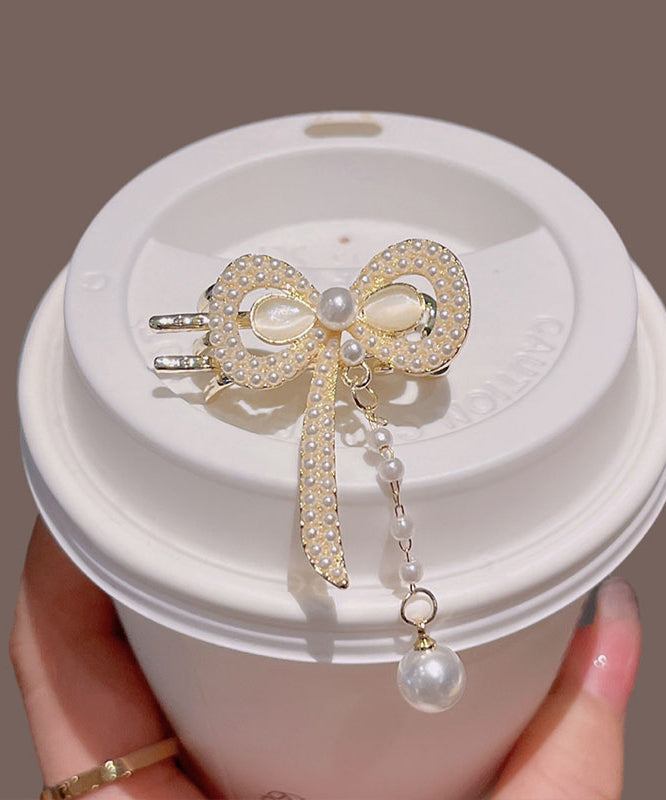 Chinese Style Gold Copper Alloy Pearl Butterfly Tassel Hairpin