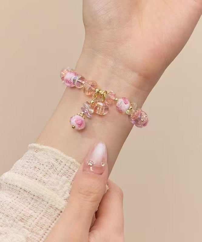 Handmade Weave Pink Crystal Chain Bracelet