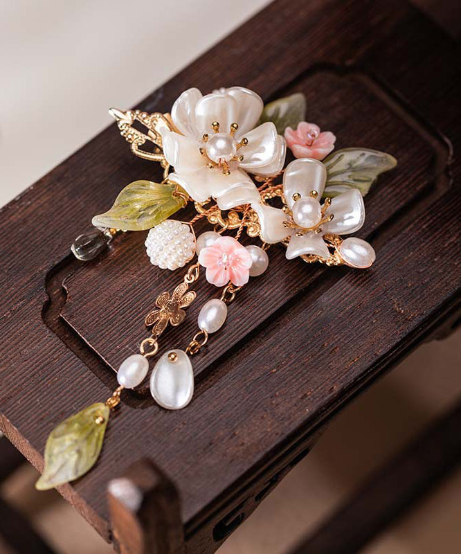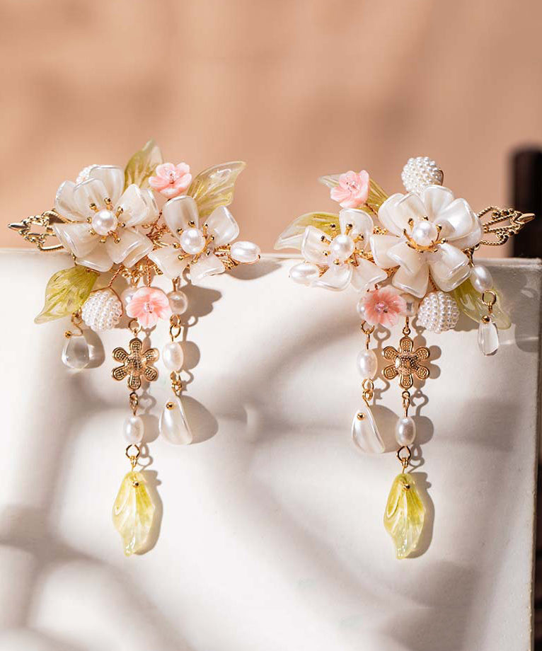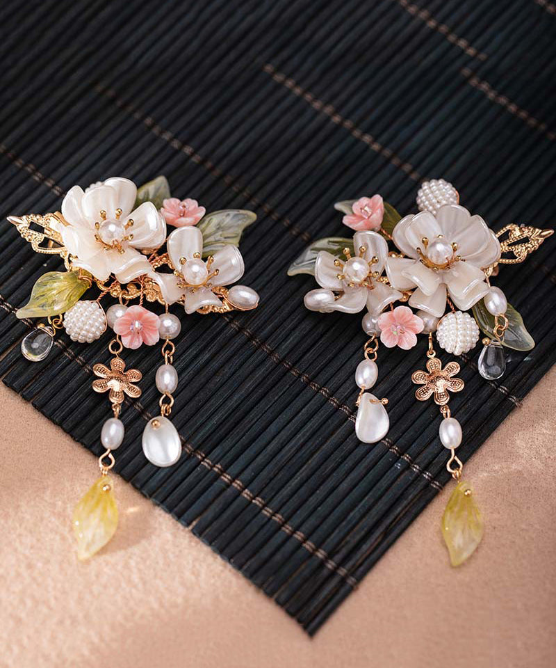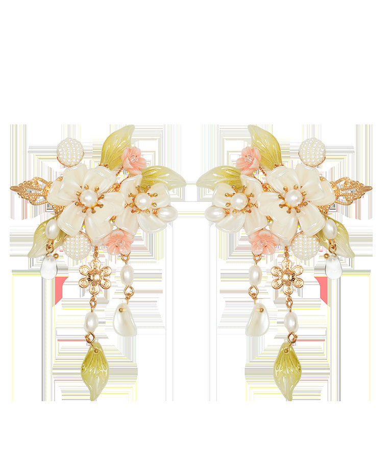 Elegant Alloy Pearl Cherry Blossom Tassel A Pair Hairpin