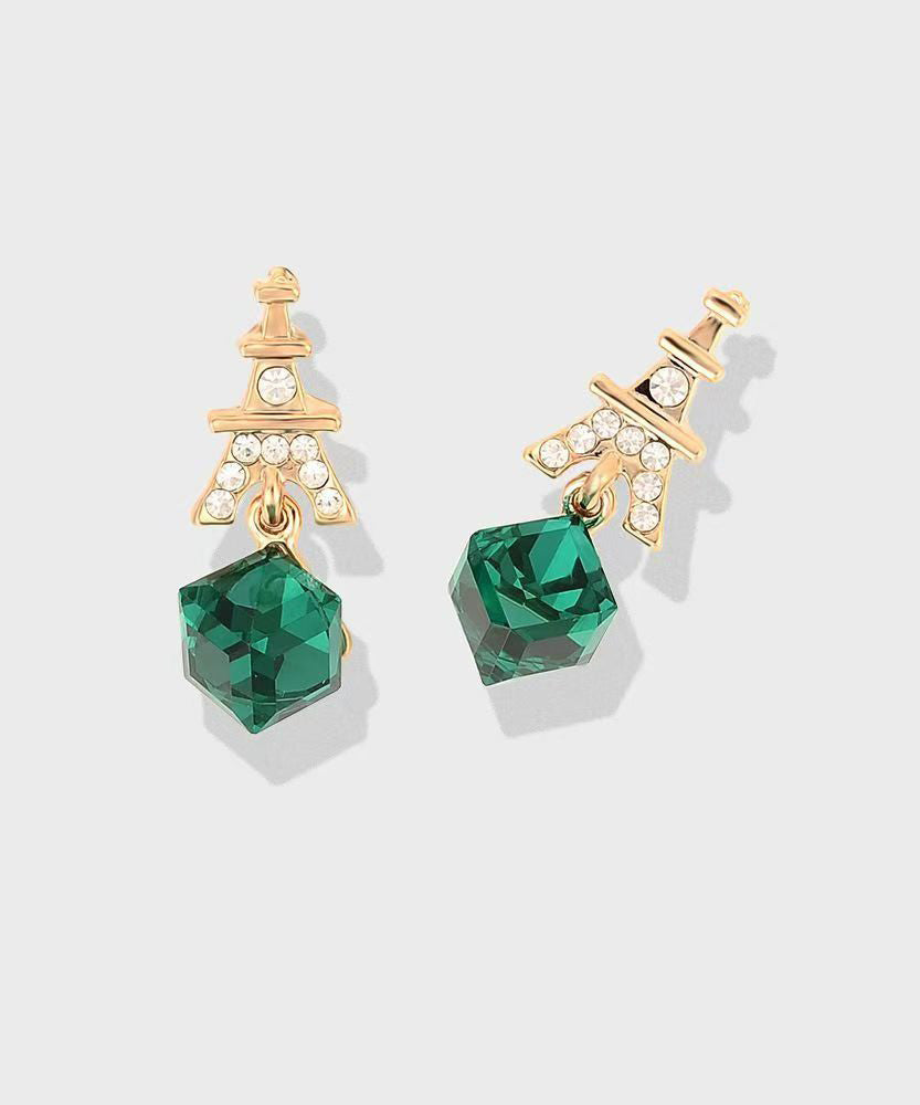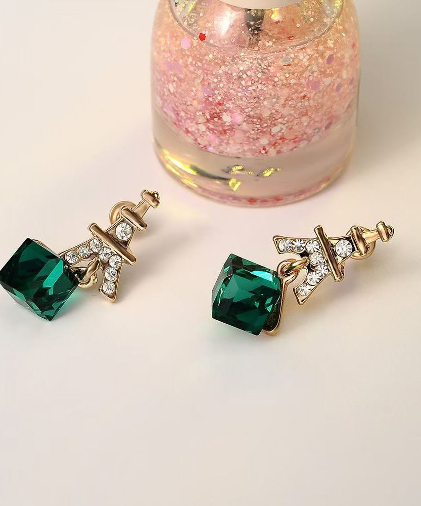 Fashion Green Sterling Silver Overgild Zircon Crystal Drop Earrings