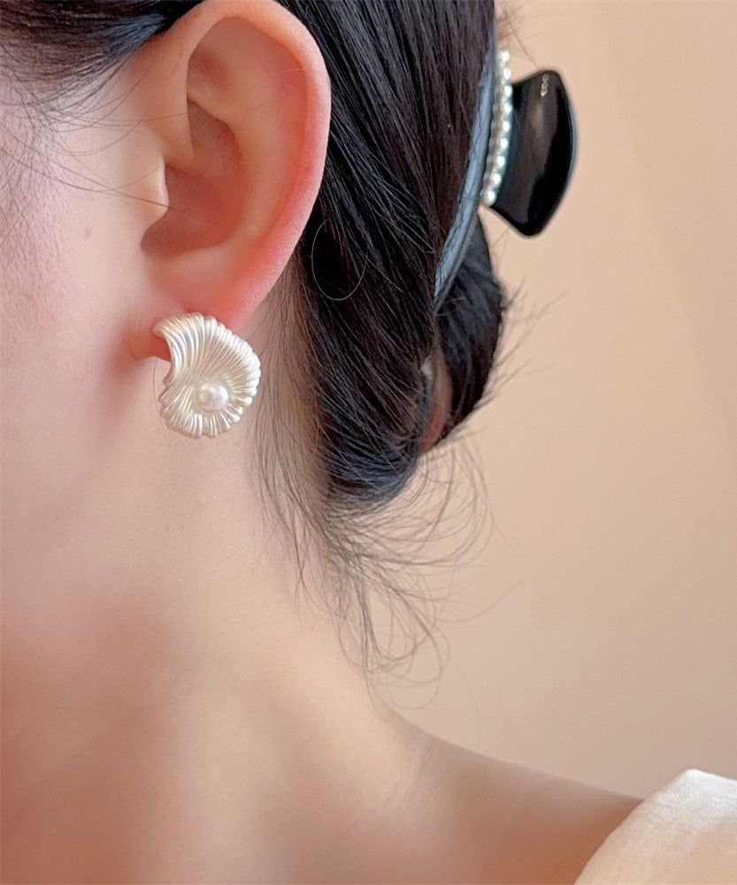 Fine Silk Copper Asymmetrical Fan-Shaped Pearl Stud Earrings