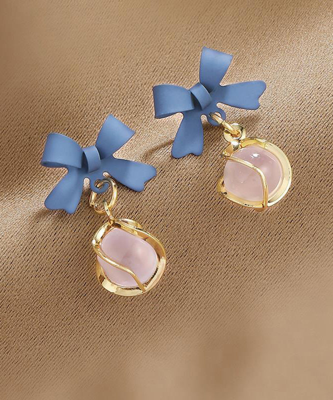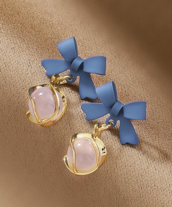 Unique Pink Alloy Zircon Bow Drop Earrings