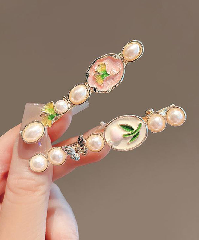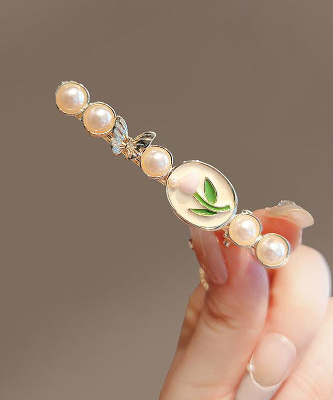 Stylish Gold Alloy Pearl Drip Glaze Tulip Hairpin