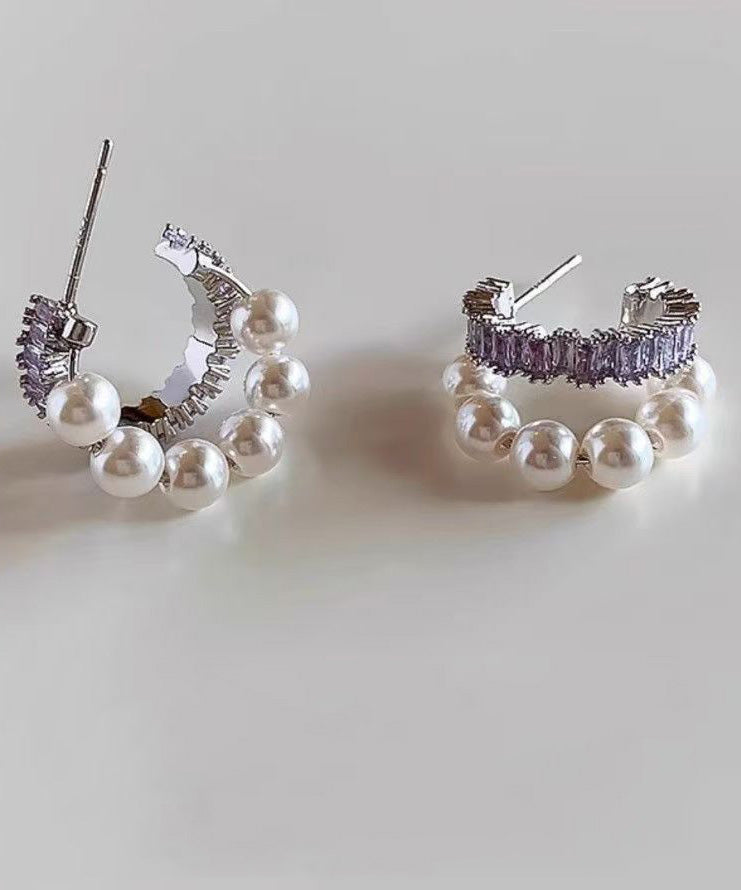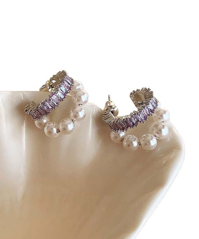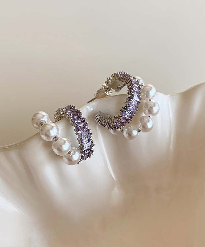 Stylish Purple Copper Overgild Zircon Pearl Hoop Earrings