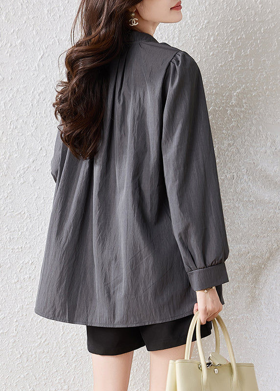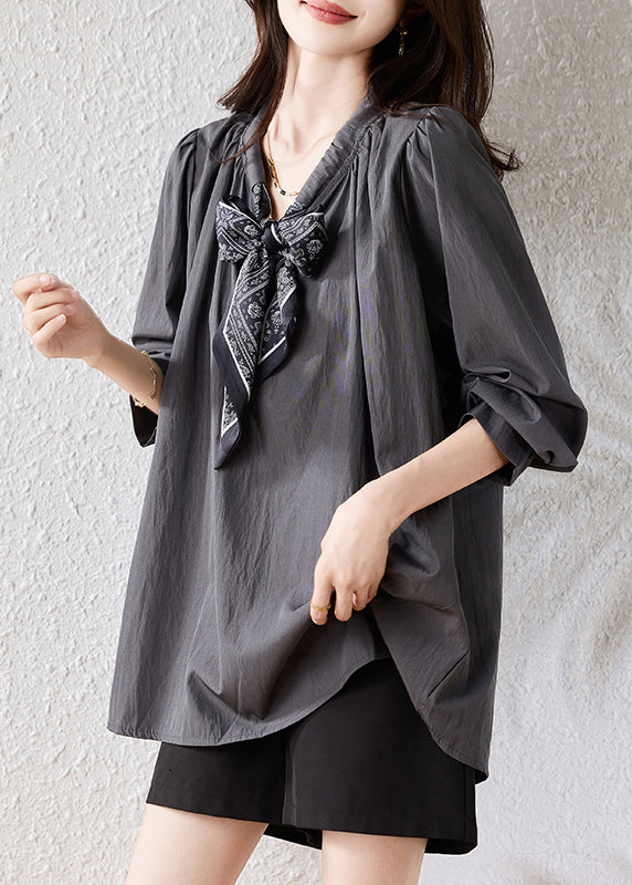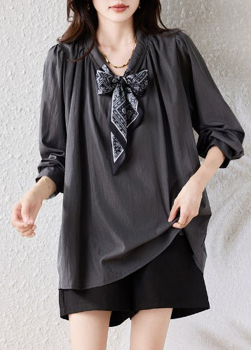 Boutique Grey Oversized Drawstring Scarf Cotton Blouses Fall