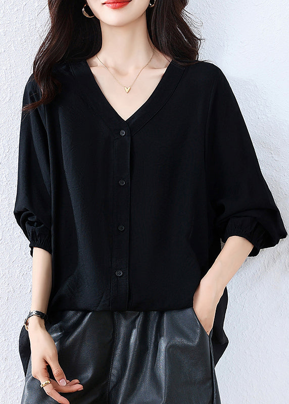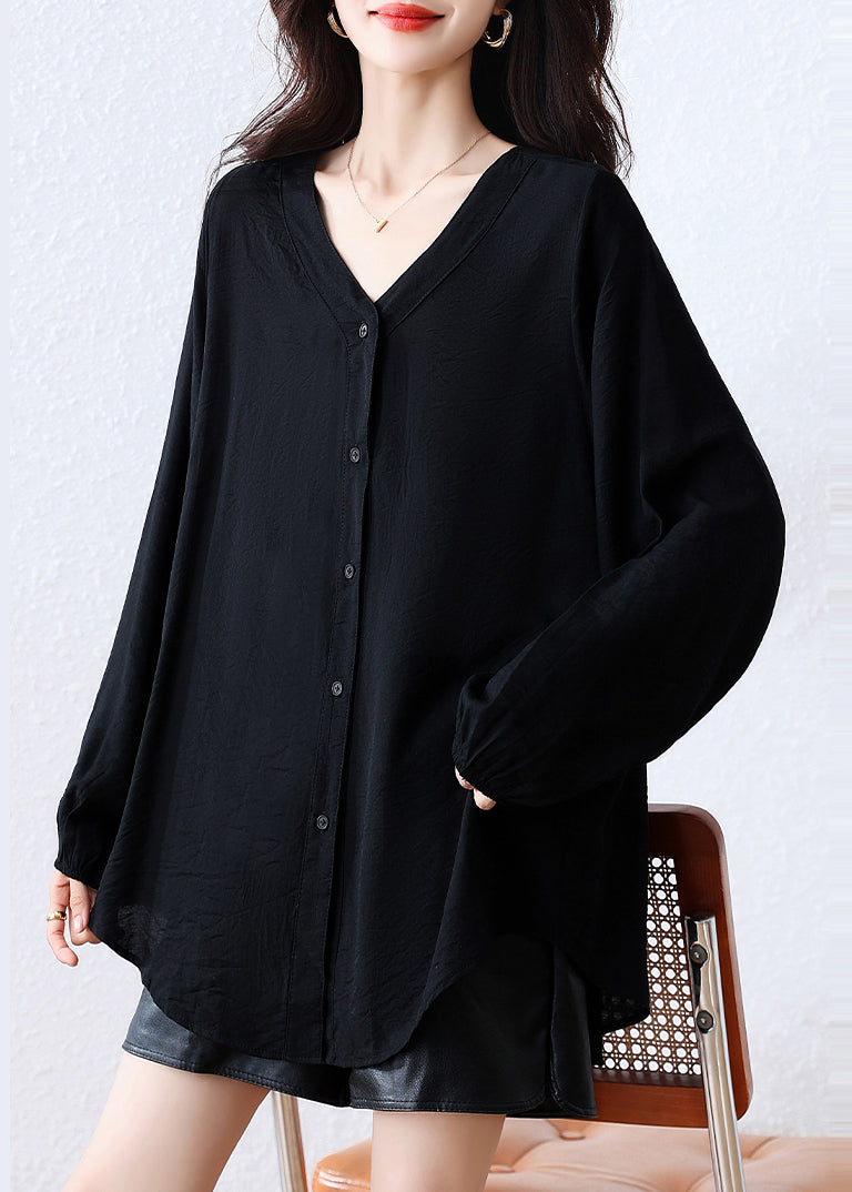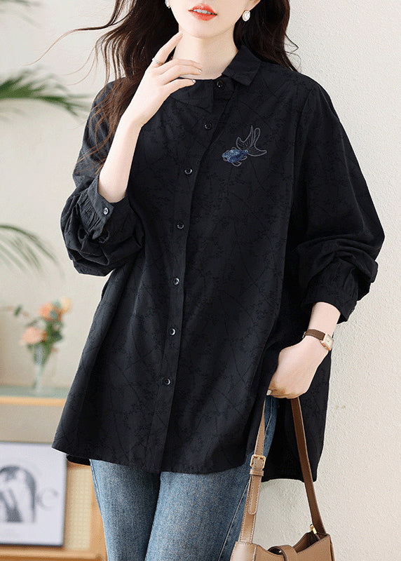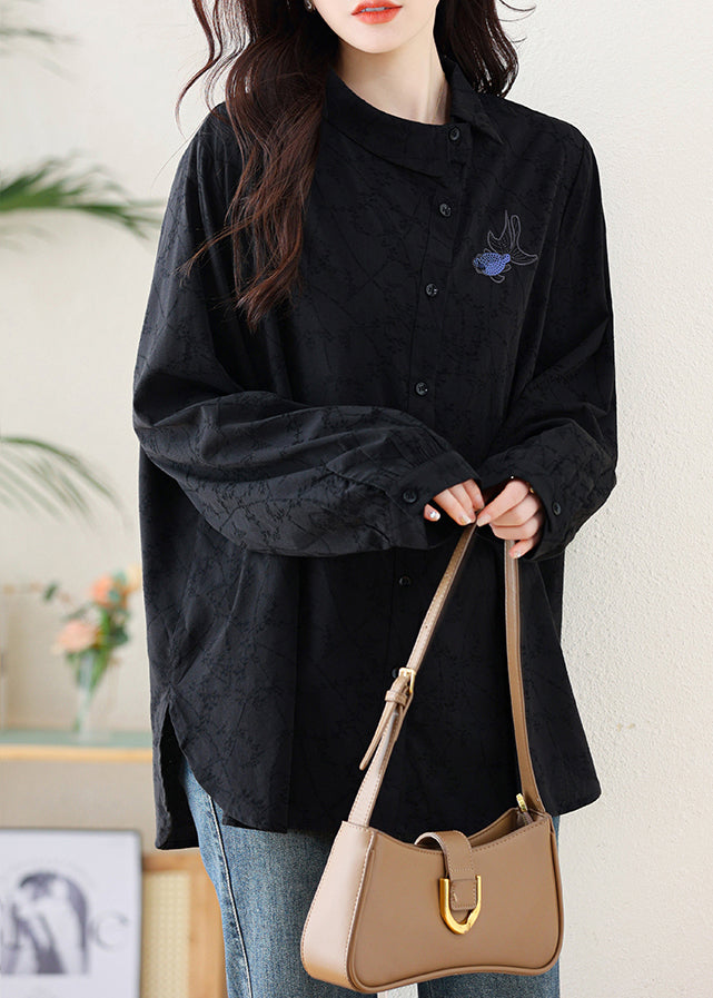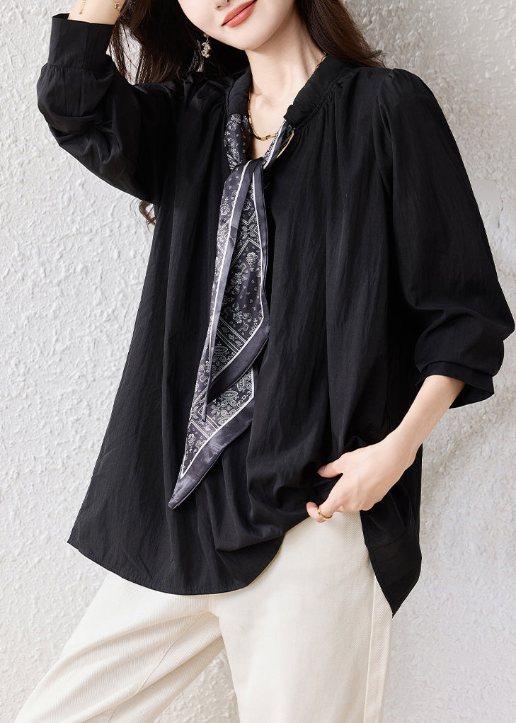 Casual Black Oversized Scarf Cotton Blouse Top Fall