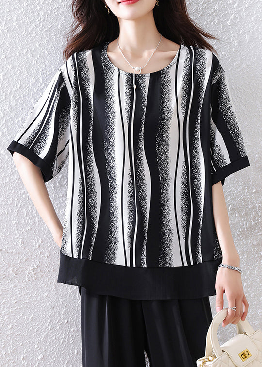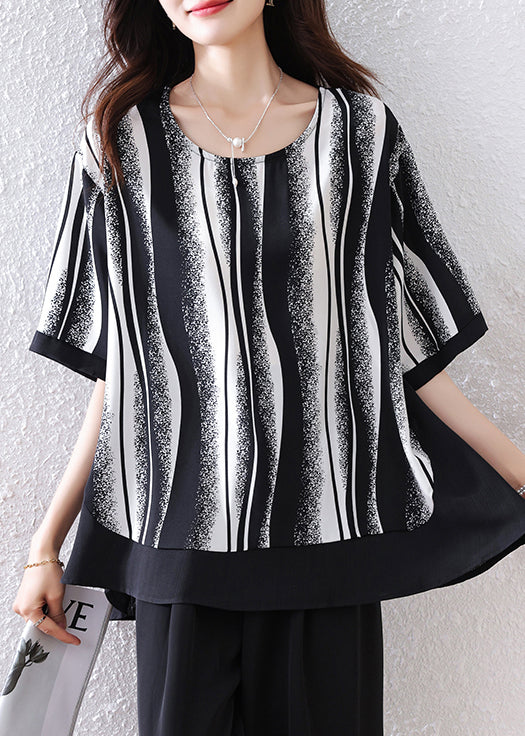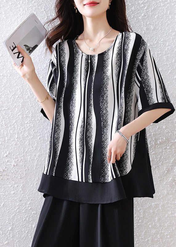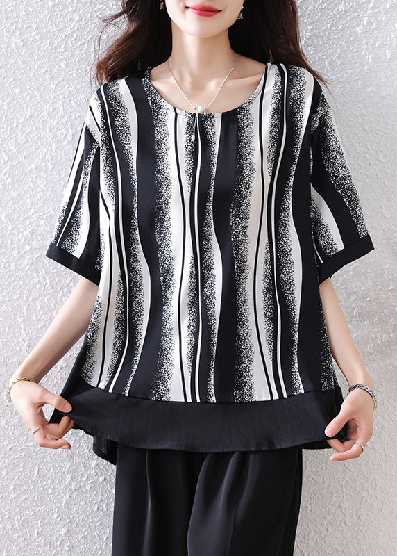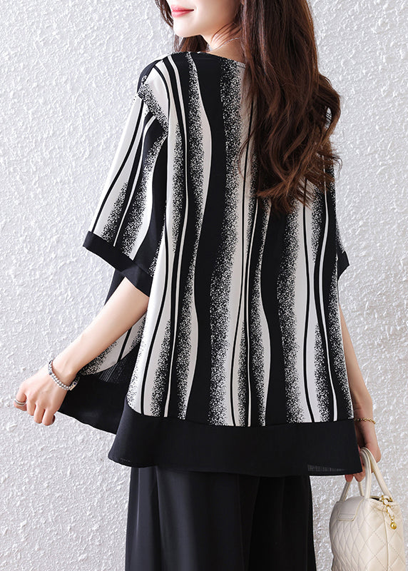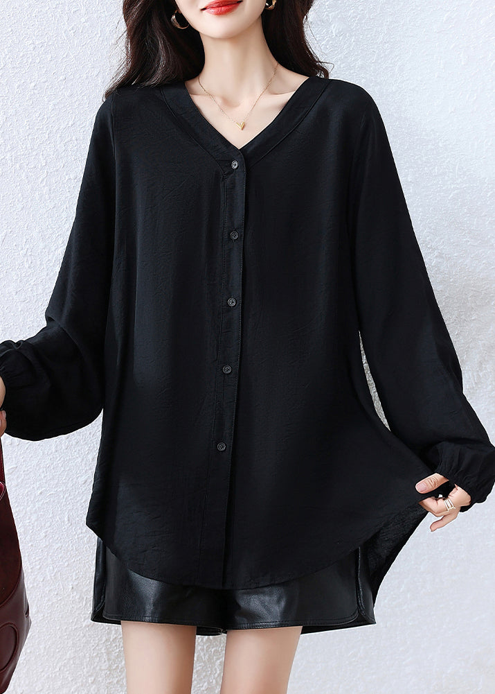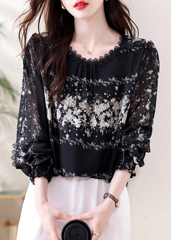 Classy Black Oversized Print Chiffon Fake Two Piece Shirts Fall