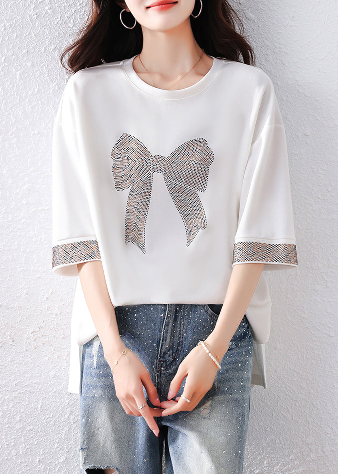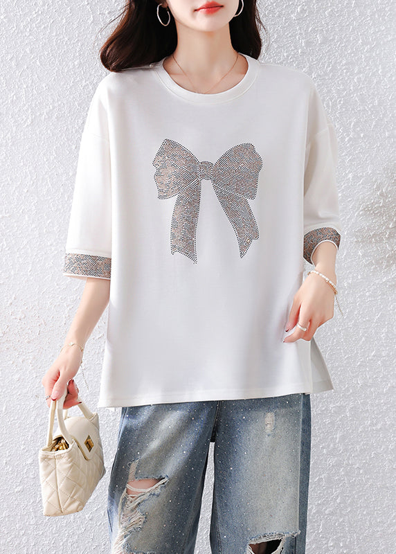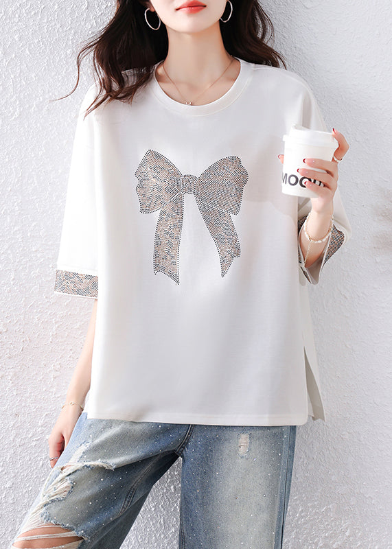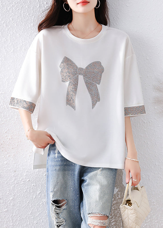Modern White Oversized Bow Rhinestone Cotton Tanks Summer