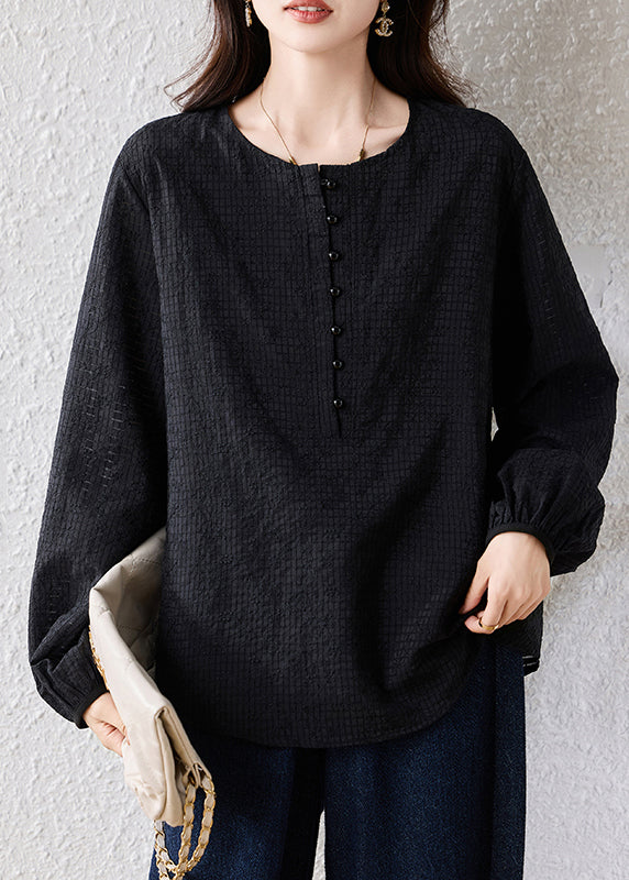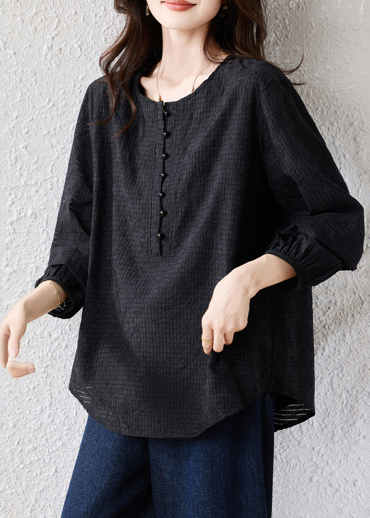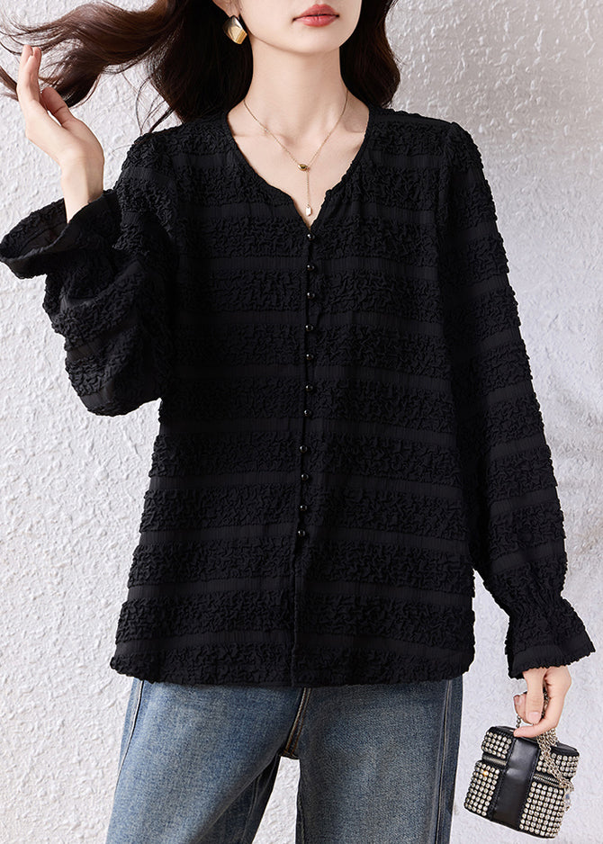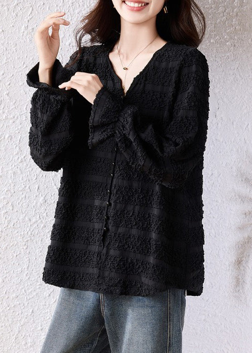 Black Jacquard Cotton Shirts Oversized Nail Bead Fall