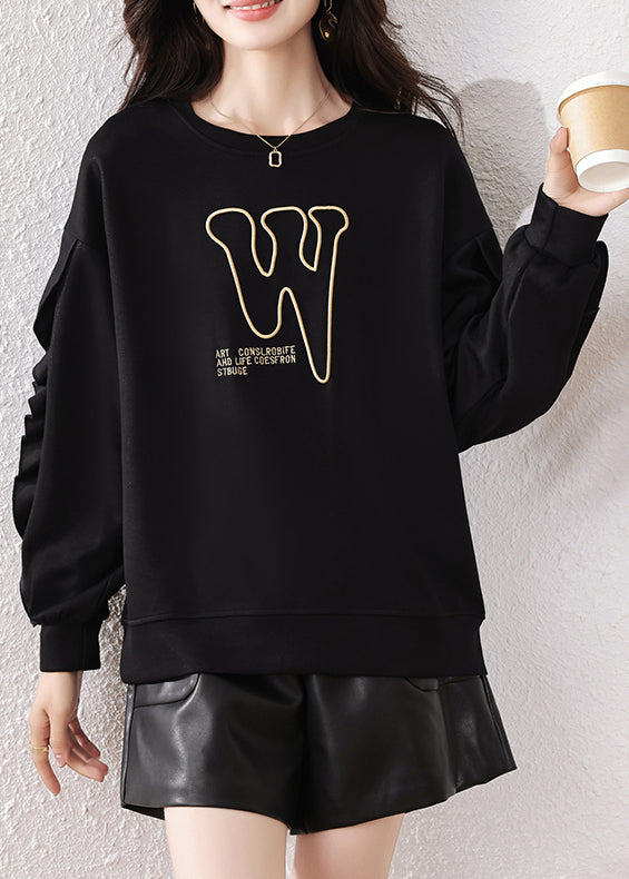 French Black Embroidered Butterfly Cotton Sweatshirt Fall