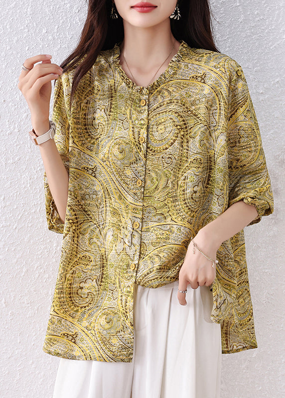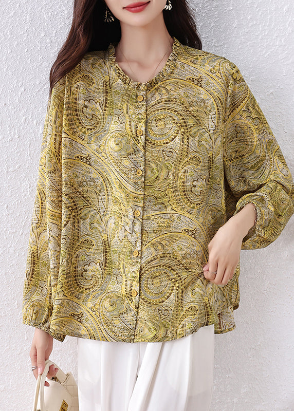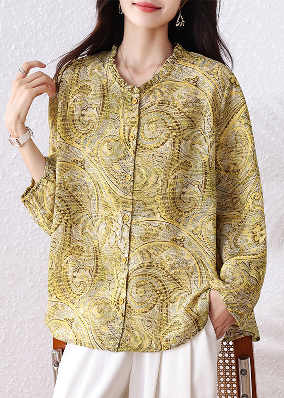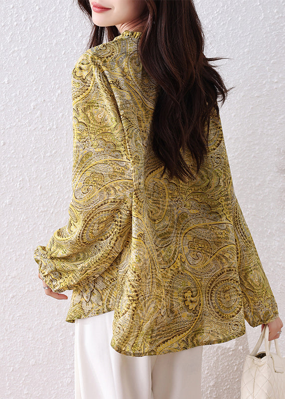 Boho Yellow Ruffled Print Chiffon Shirt Top Fall