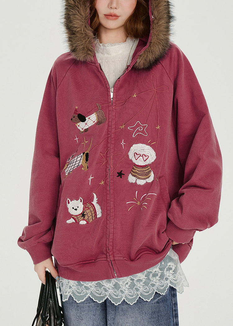 Boho Rose Embroidered Cotton Hooded Coat Spring