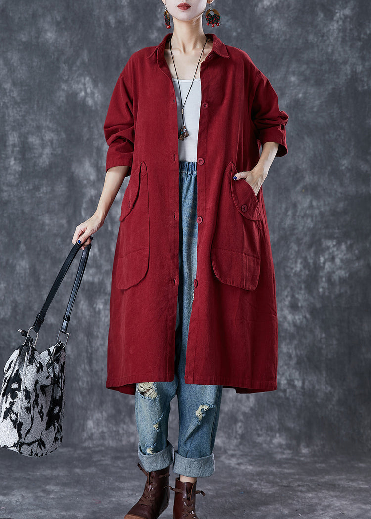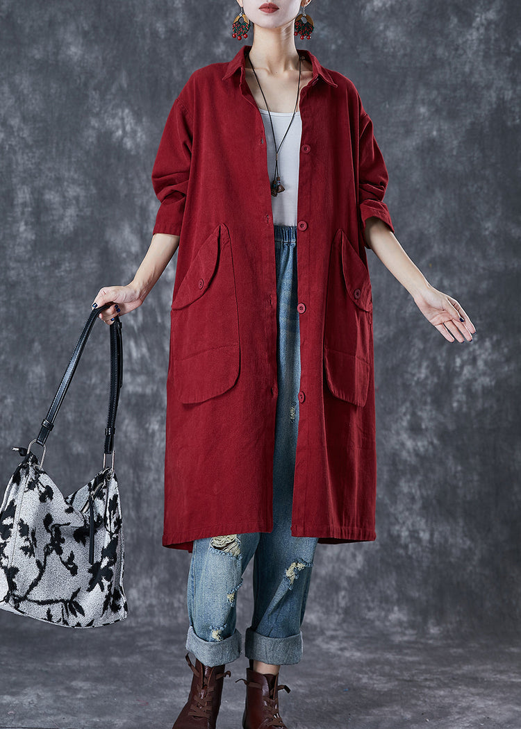 Classy Red Oversized Pockets Cotton Trench Coats Fall