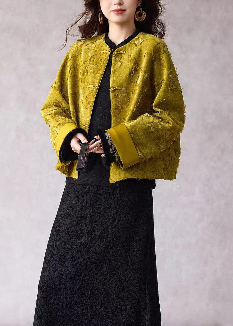Women Green O Neck Jacquard Fine Cotton Filled Jacket Winter