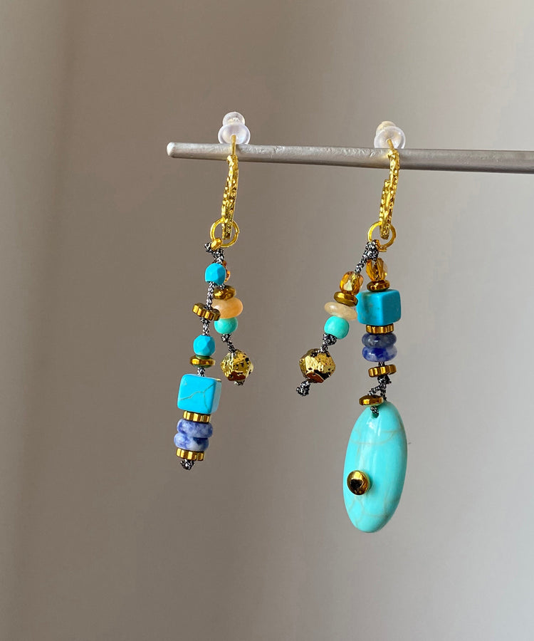 Boho Copper Overgild Asymmetrical Natural Stone Drop Earrings