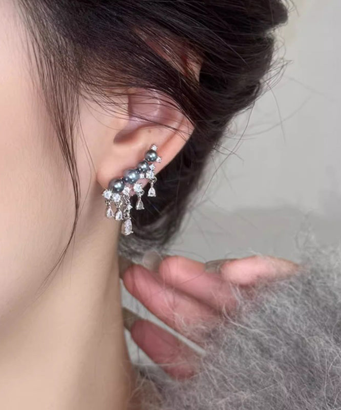 Art Grey Copper Overgild Zircon Pearl Stud Earrings