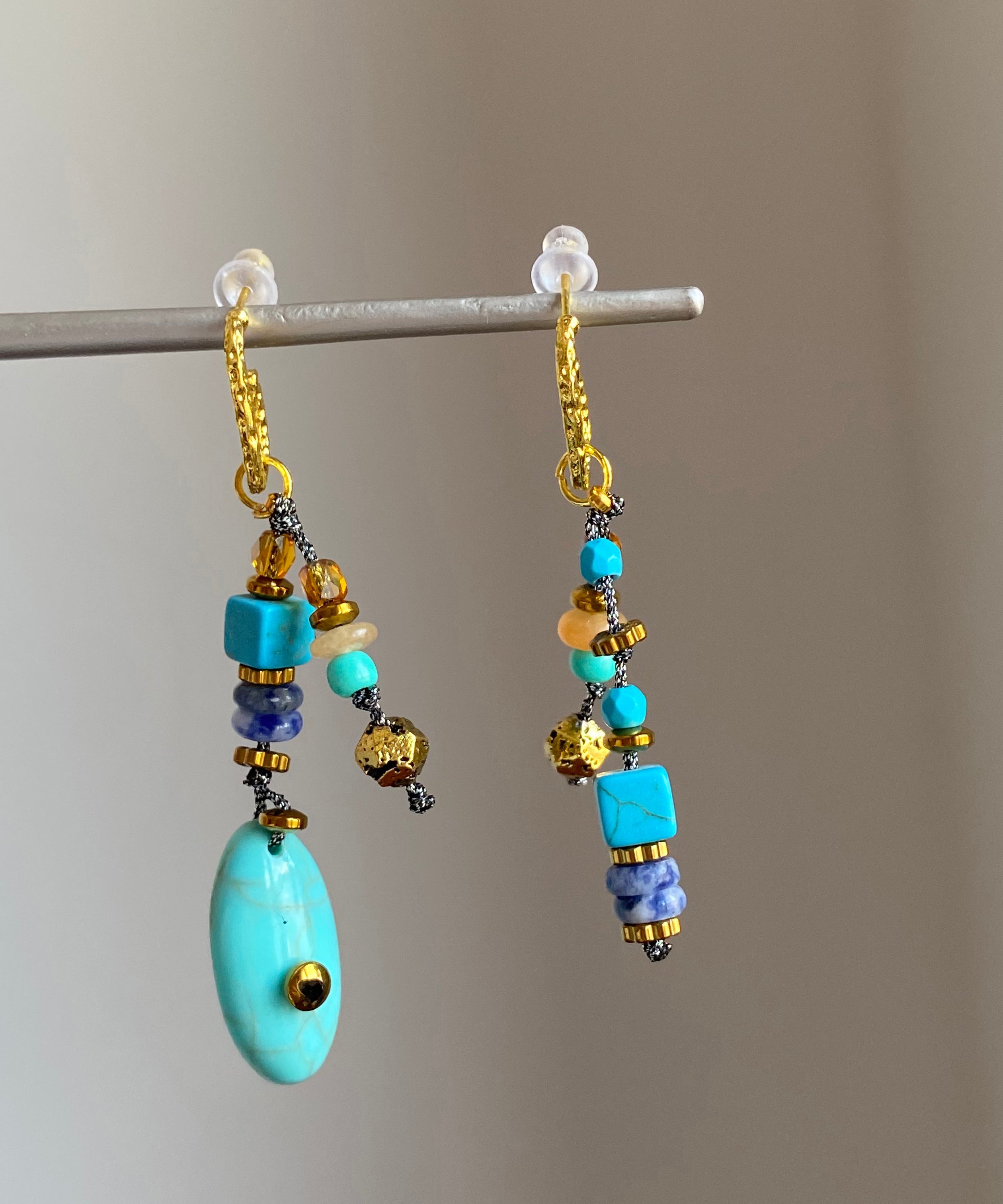 Chic Blue Copper Overgild Asymmetrical Natural Stone Hoop Earrings