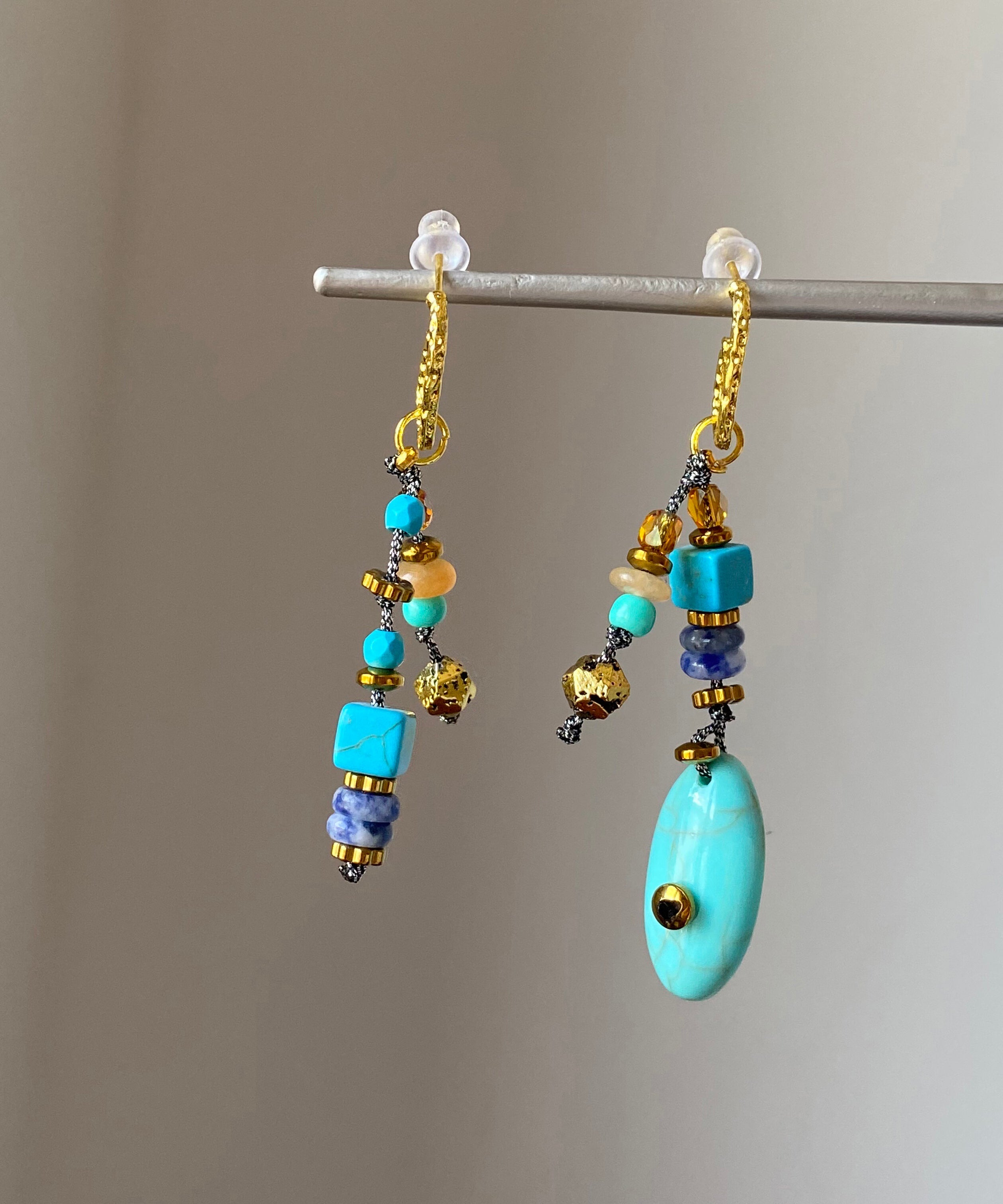 Boho Copper Overgild Asymmetrical Natural Stone Drop Earrings