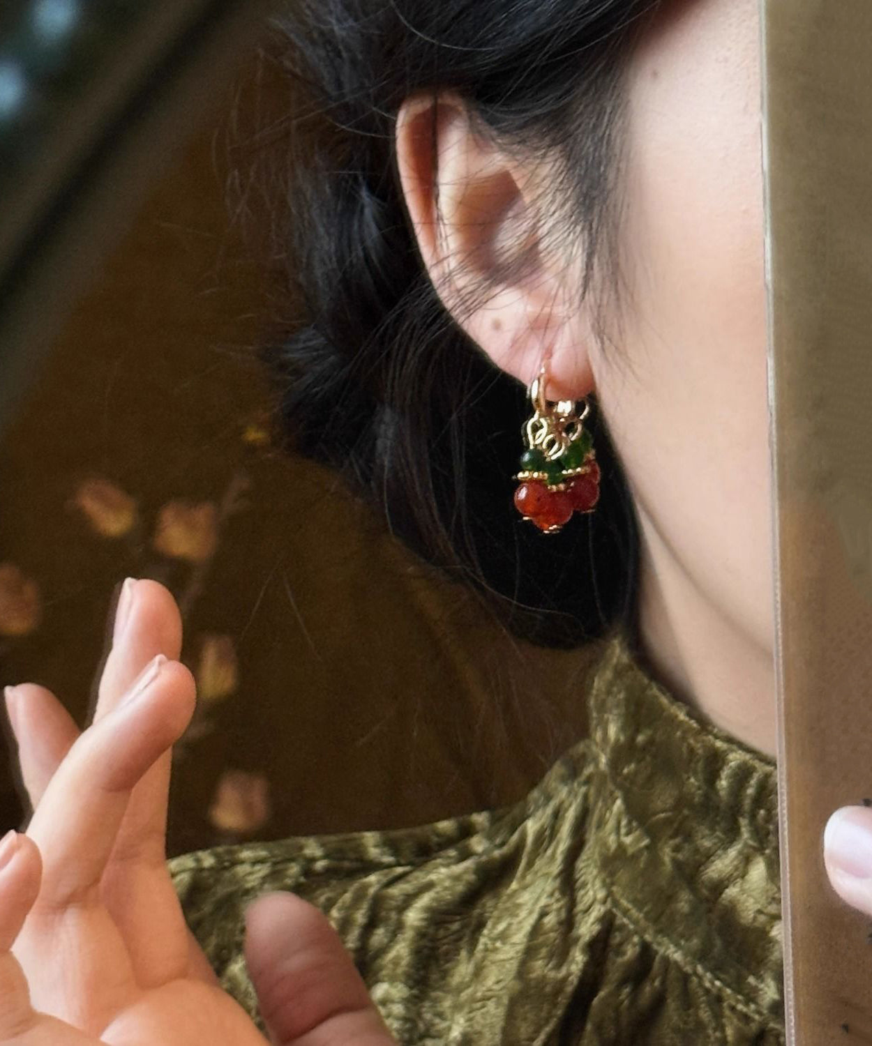 Chinese Style Gold Sterling Silver Overgild Enamel TasselDrop Earrings