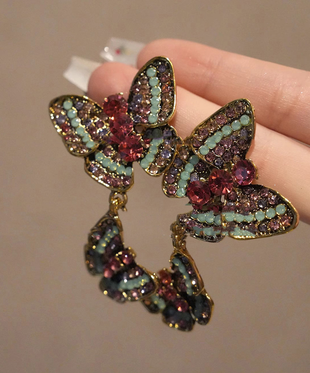Regular Silk Copper Zircon Butterfly Water Droplet Stud Earrings