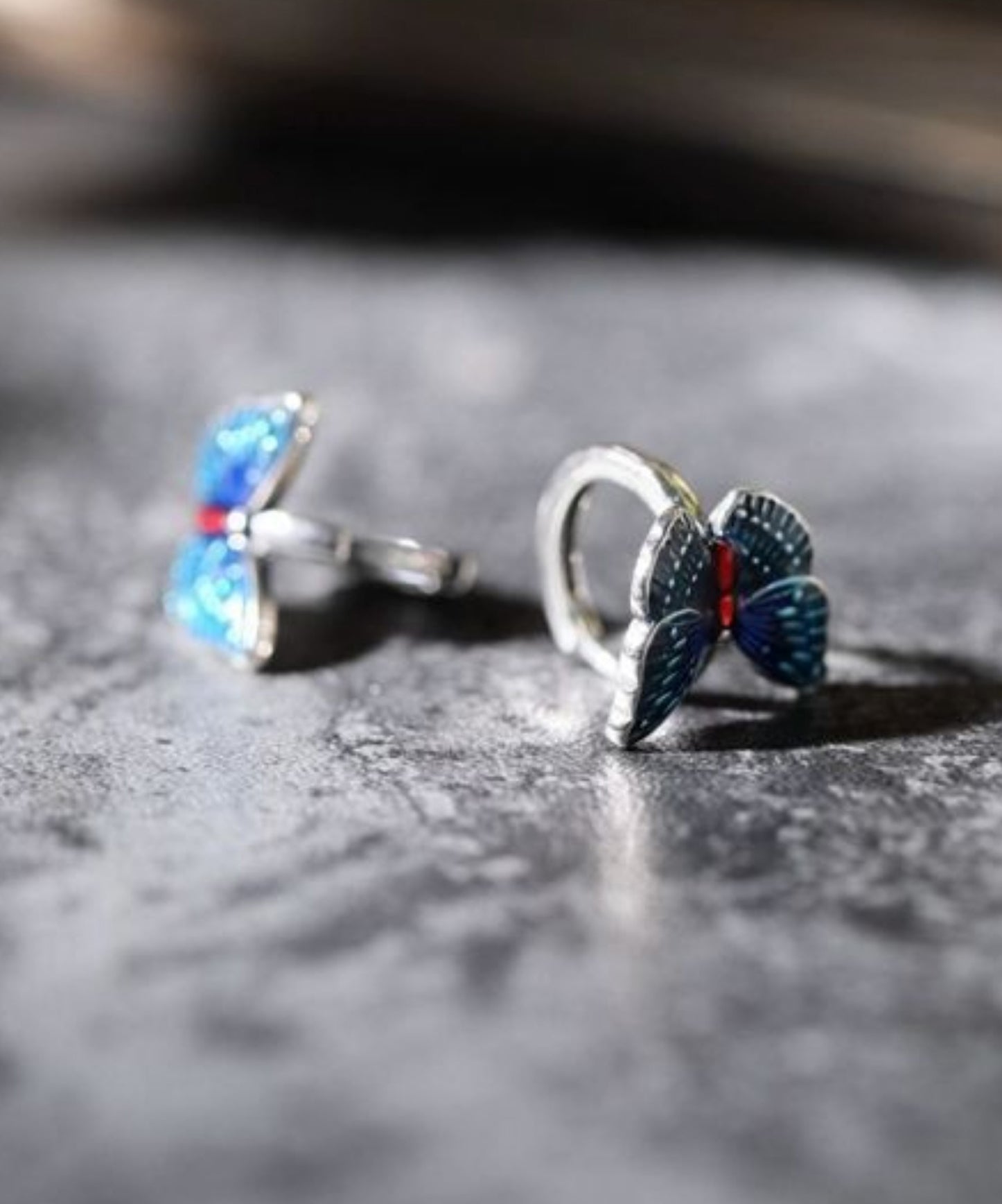 Vintage Blue Sterling Silver Butterfly Cloisonne Hoop Earrings