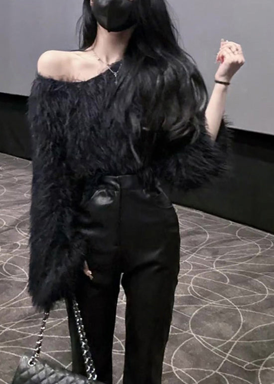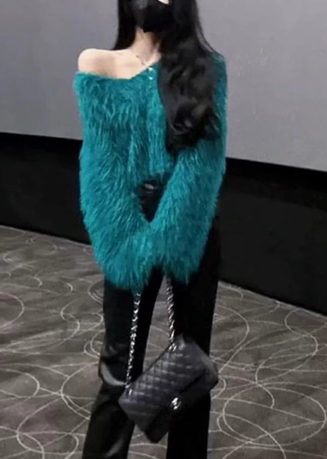 French Green Cold Shoulder Mink Hair Knitted Sweaters Spring