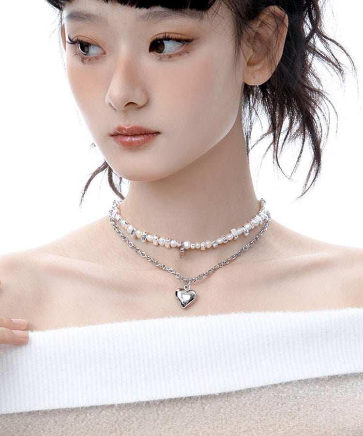 Boutique Pearl Love Heart Pendant Two Piece Set Alloy Necklace