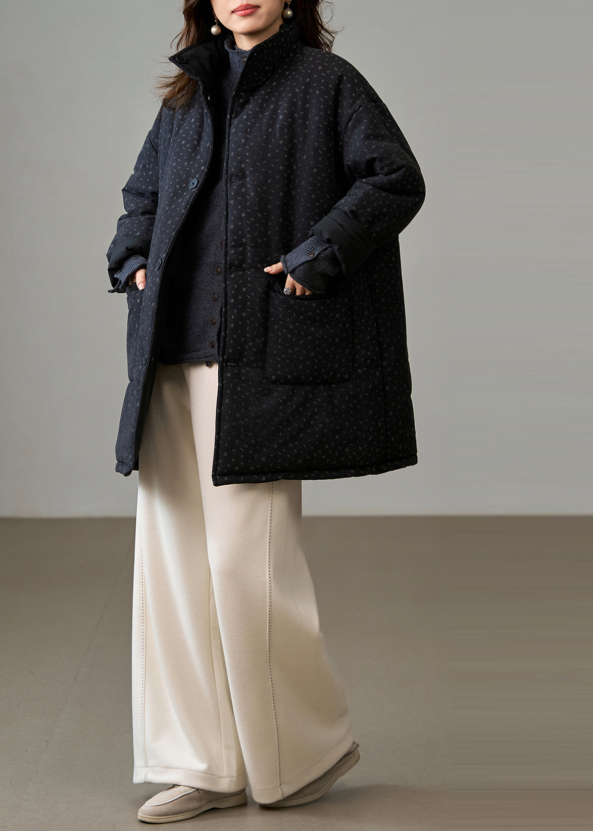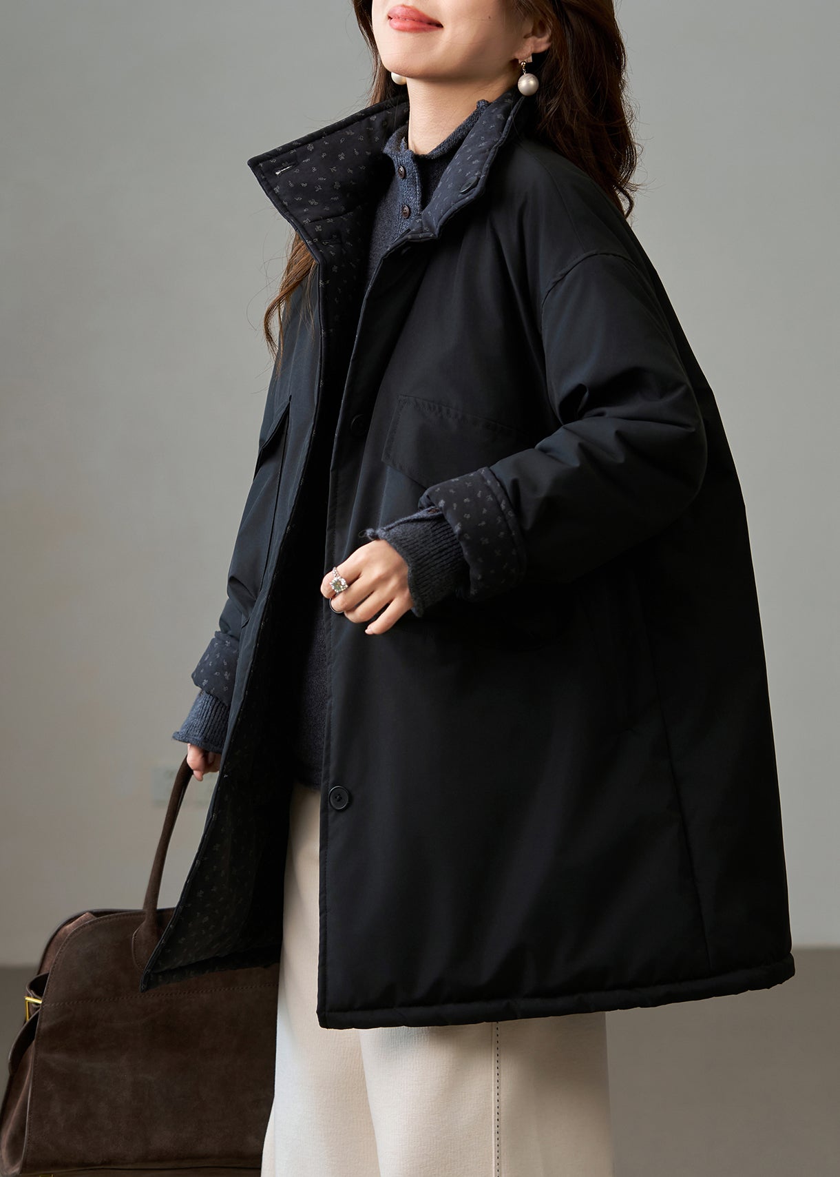 DIY Black Stand Collar Wear On Both Sides Fine Cotton Filled Winter Coats