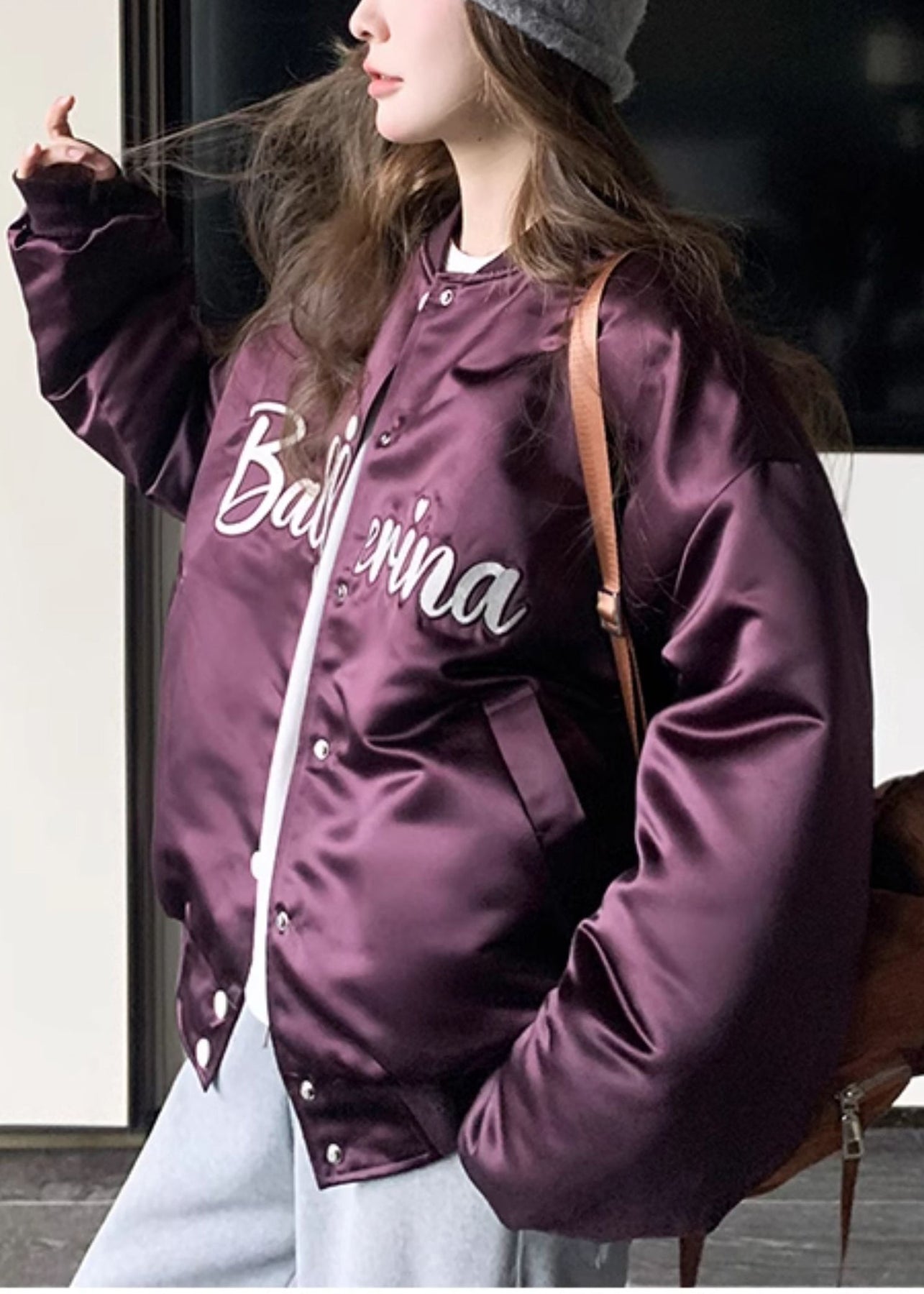 Fitted Purple Embroidered Pockets Fine Cotton Filled Jackets Winter
