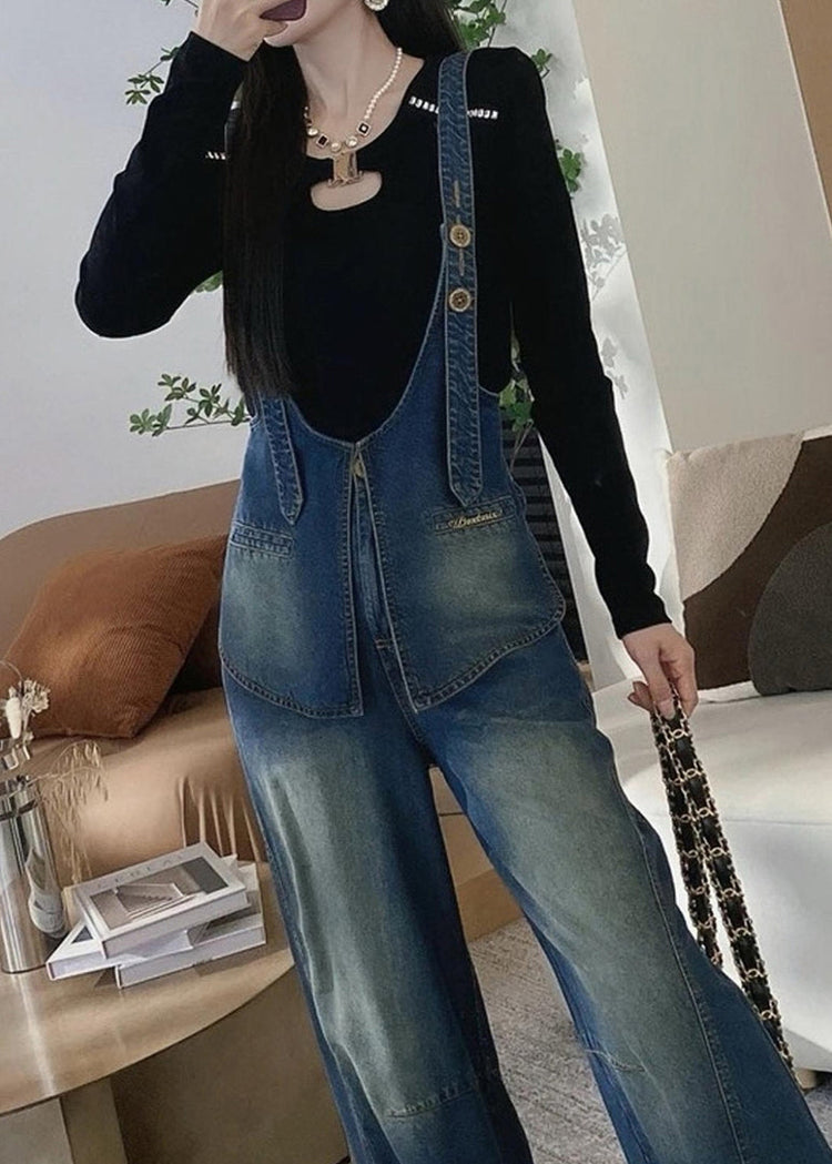 New Blue Patchwork Denim Overalls Jumpsuit Spring