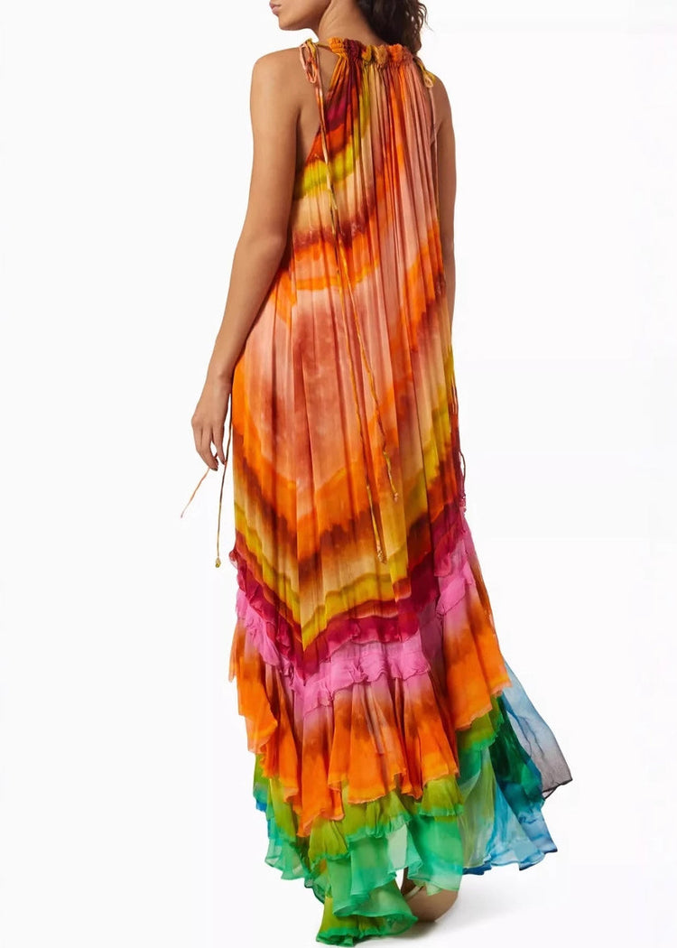 Beautiful Rainbow Wrinkled Lace Up Cotton Maxi Dresses Sleeveless