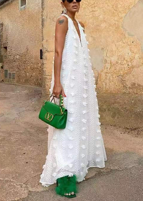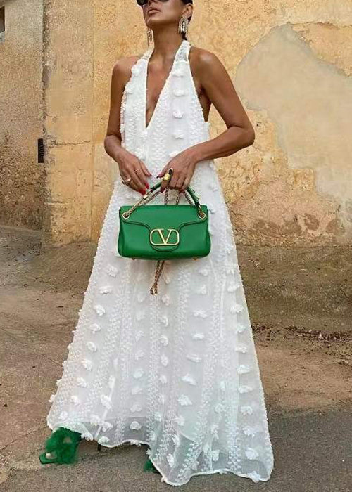 Bohemian White Backless Ribbon Floral Maxi Dress Sleeveless