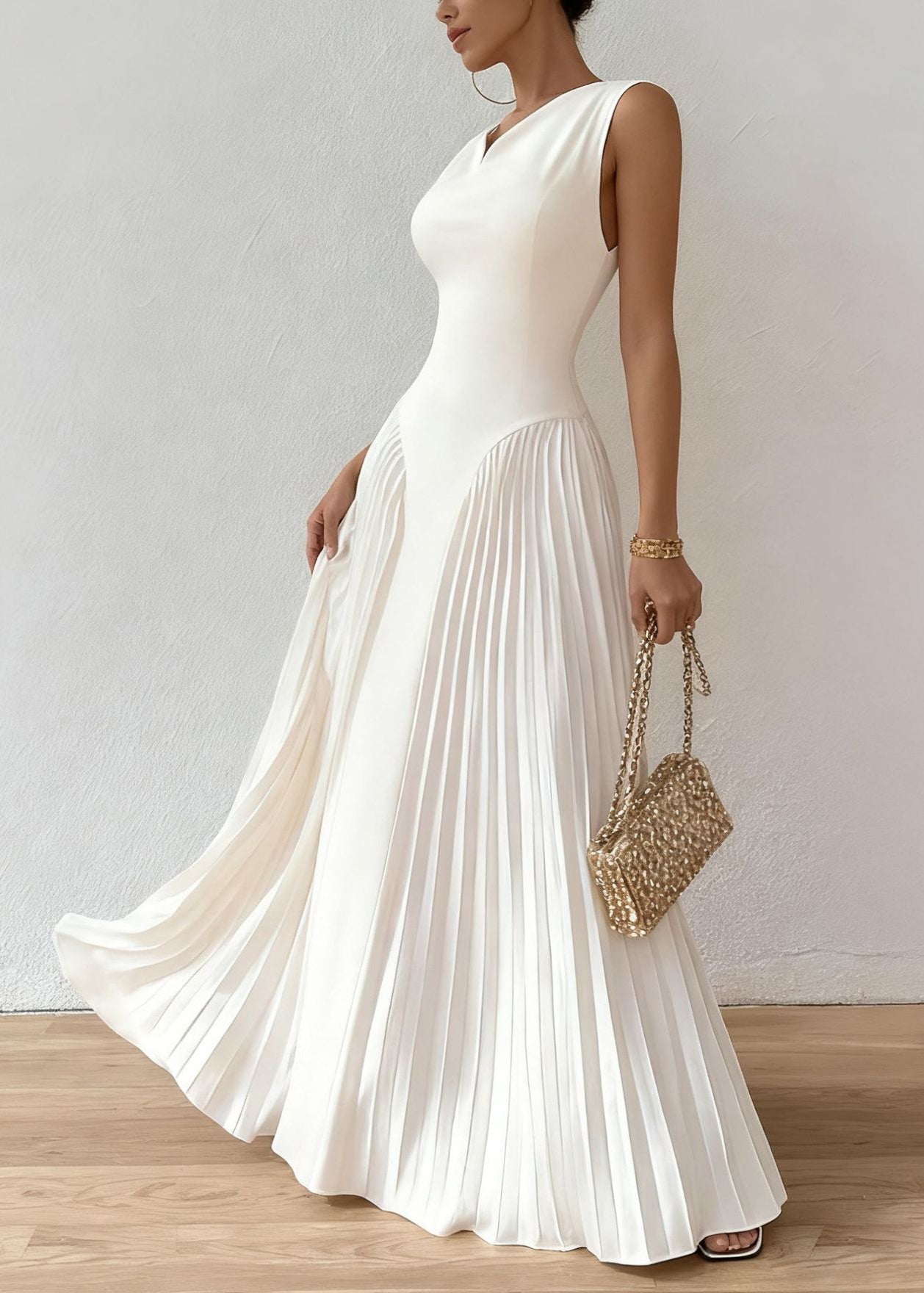 Fashion White Wrinkled High Waist Cotton Party Dress Summer
